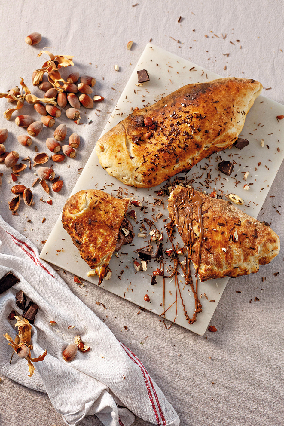 - Ψήνουμε τα καλτσόνε για 12-15 λεπτά, μέχρι να ροδίσουν. Τα σερβίρουμε γαρνίροντας με λίγα φουντούκια από πάνω για έξτρα τραγανή υφή.