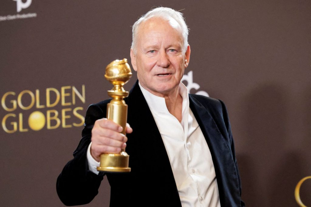 Ο Στέλαν Σκάσγκαρντ με τη Χρυσή Σφαίρα του για τη Συναισθηματική Αξία. REUTERS/Mario Anzuoni