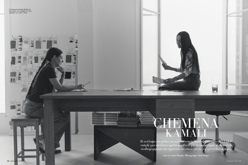 Τέλος, η καλλιτεχνική διευθύντρια του οίκου Chloe, Chemena Kamali εξηγεί το όραμά της για το γαλλικό house, αποκαλύπτει ποιο είναι το στοιχείο που ξεχωρίζει στην γκαρνταρόμπα της και από το οποίο διαθέτει 600 (!!!) κομμάτια, ενώ ανατρέχει με ρομαντική διάθεση στα πρώτα βήματα της υπέροχης καριέρας της.