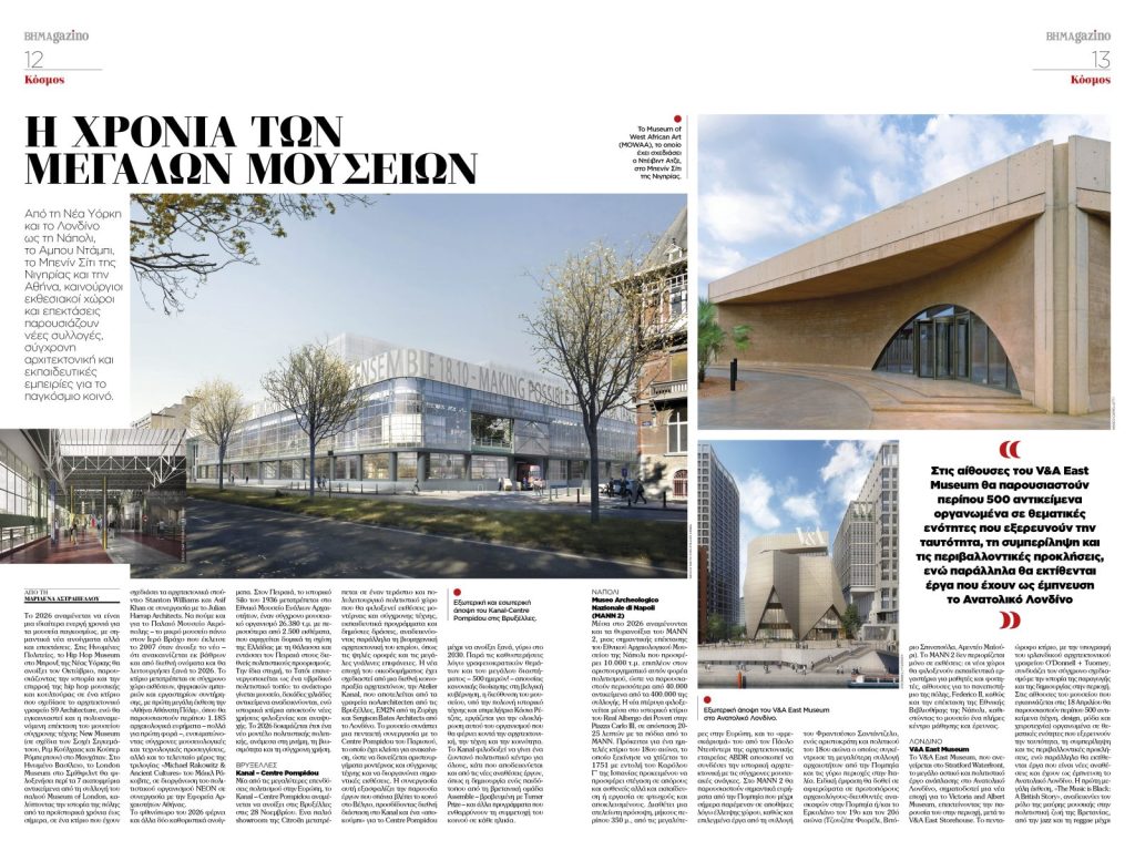 Το 2026 αναδεικνύεται σε χρονιά των μεγάλων μουσείων, με νέους εκθεσιακούς χώρους και εντυπωσιακές επεκτάσεις από τη Νέα Υόρκη και το Λονδίνο μέχρι τη Νάπολη, το Άμπου Ντάμπι, το Μπενίν Σίτι της Νιγηρίας και την Αθήνα, προσφέροντας σύγχρονες συλλογές, αρχιτεκτονική αιχμής και πρωτοποριακές εκπαιδευτικές εμπειρίες.