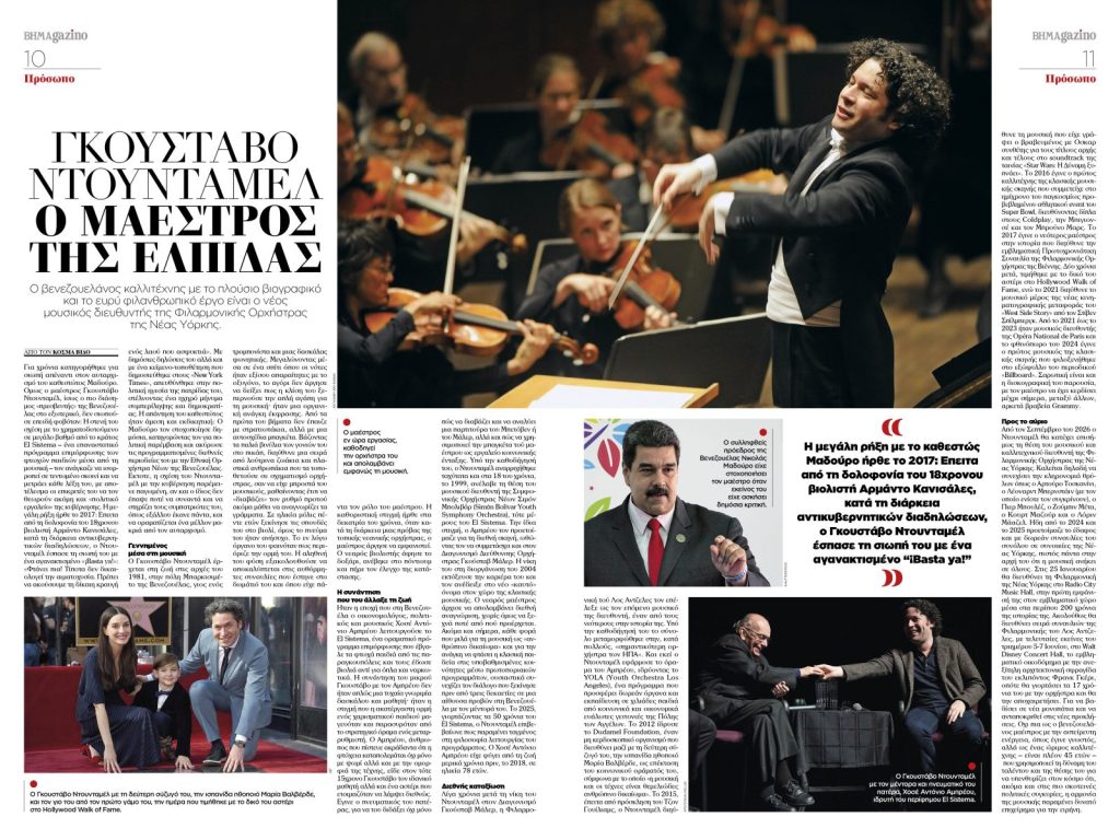 Τέλος, ο Γκουστάβο Ντουνταμέλ, ο «μαέστρος της ελπίδας», ξεδιπλώνει το όραμά του. Ο σπουδαίος Βενεζουελανός καλλιτέχνης, με πλούσιο βιογραφικό και έντονη φιλανθρωπική δράση, αναλαμβάνει τη μουσική διεύθυνση της Φιλαρμονικής Ορχήστρας της Νέας Υόρκης, σηματοδοτώντας μια νέα εποχή.