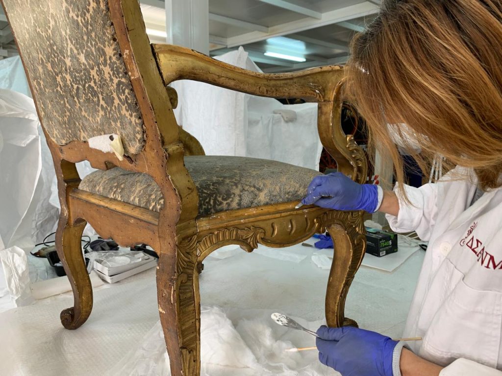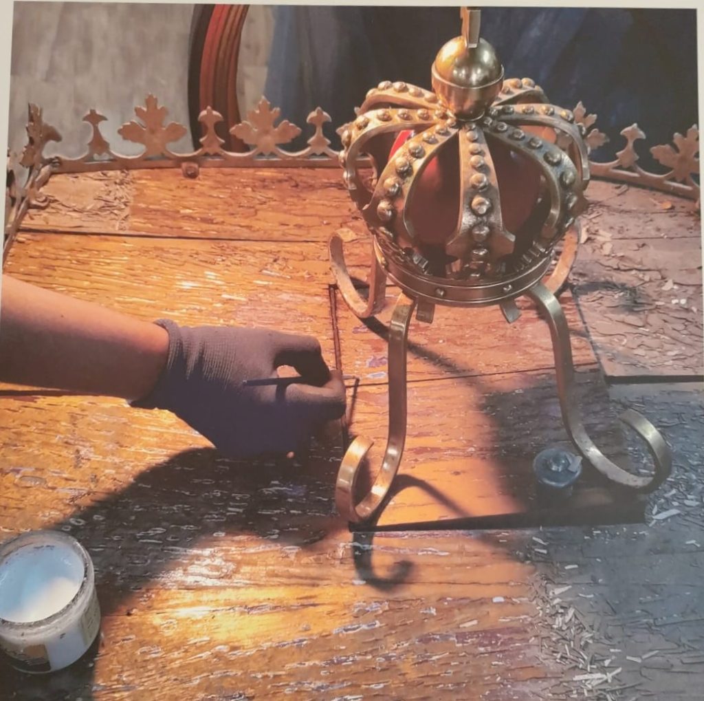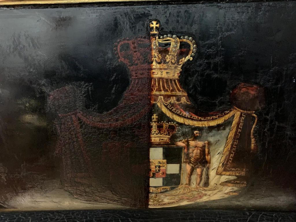 Οικόσημο από βασιλική άμαξα πριν και μετά τις εργασίες συντήρησης @ΥΠΠΟ
