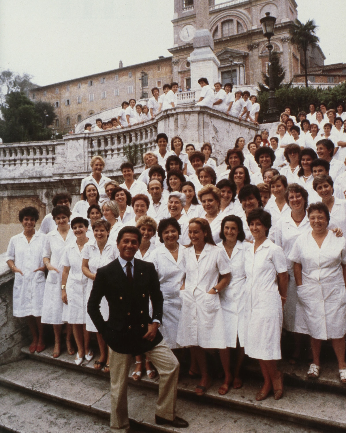 Ενώ ο κόσμος δονούνταν από το πνεύμα της αλλαγής, της αμφισβήτησης και της αναθεώρησης, εκείνος αποφάσισε να κινηθεί αντίθετα στο ρεύμα και να παρουσιάσει τη θρυλική σήμερα Collezione Bianca. Ήταν μια δήλωση αριστοκρατικής σιωπής – ή τουλάχιστον έτσι χαρακτηρίστηκε πολλά χρόνια μετά.