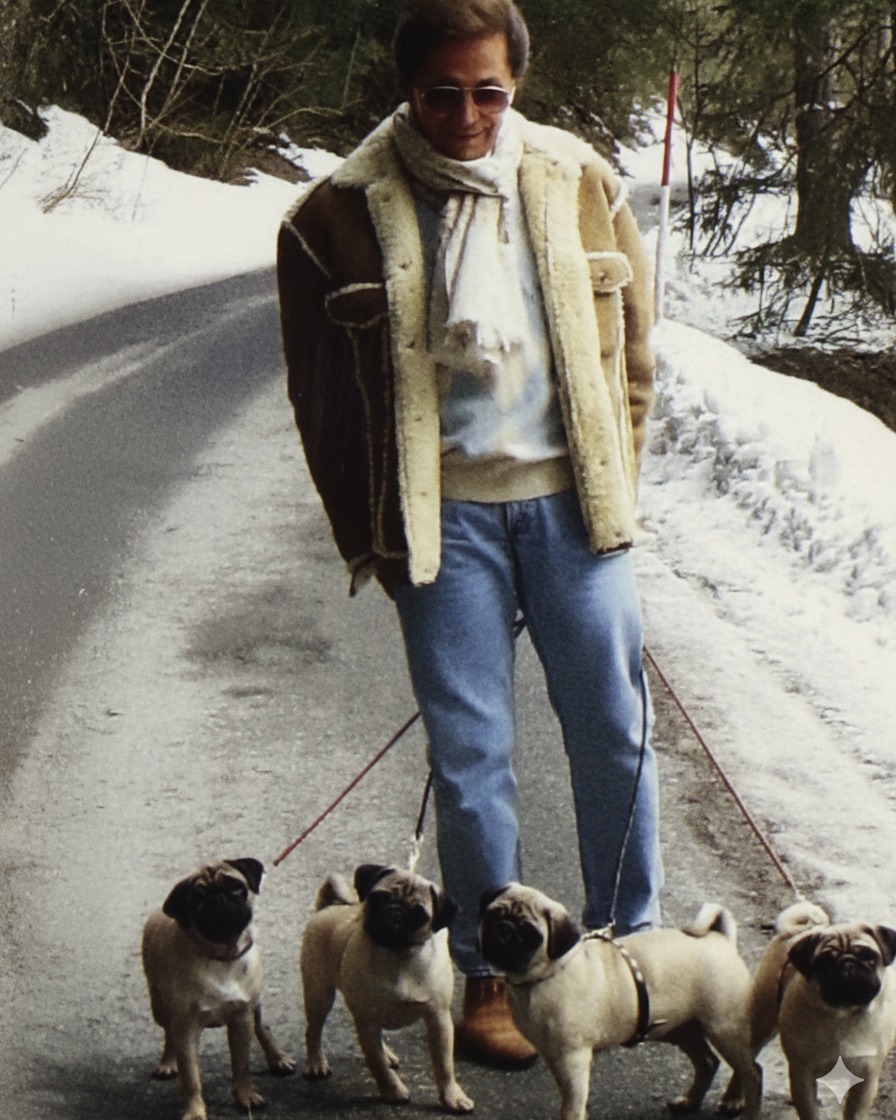 Οι χώροι όπου επέλεγε να ζει την καθημερινότητά του μπορεί σε κάποιους να έμοιαζαν φαραωνικών διαστάσεων ή υπερτροφικά πολυτελείς. Για τον ίδιο ήταν απλώς το φυσικό περιβάλλον μέσα στο οποίο μπορούσε όχι μόνο να αναπνέει, αλλά και να μεγαλουργεί. Πάντα συντροφιά με τους σιωπηλούς μάρτυρες της ζωής του, τα αγαπημένα του σκυλιά ράτσας παγκ.