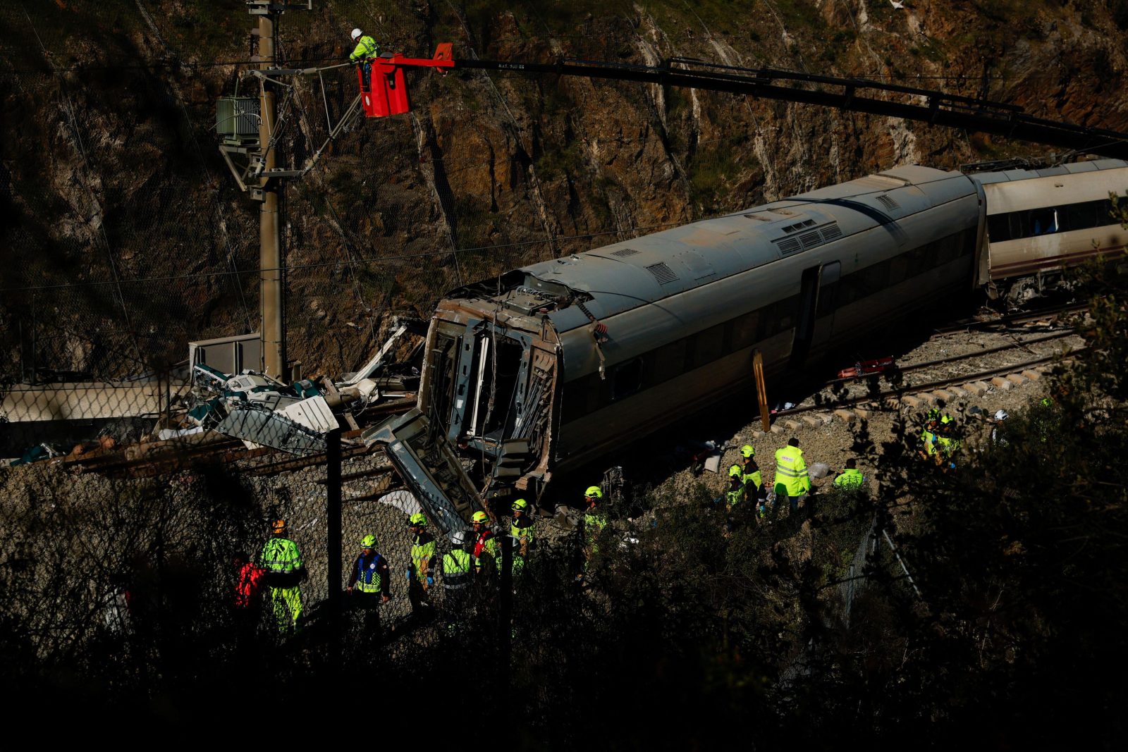 Οι ισπανικές Αρχές αναζητούν τα αίτια που προκάλεσαν τον εκτροχιασμό του τρένου και την πτώση των βαγονιών στις διπλανές ράγες, πάνω στις οποίες κινούνταν η δεύτερη αμαξοστοιχία, με αποτέλεσμα την φονική σύγκρουση.