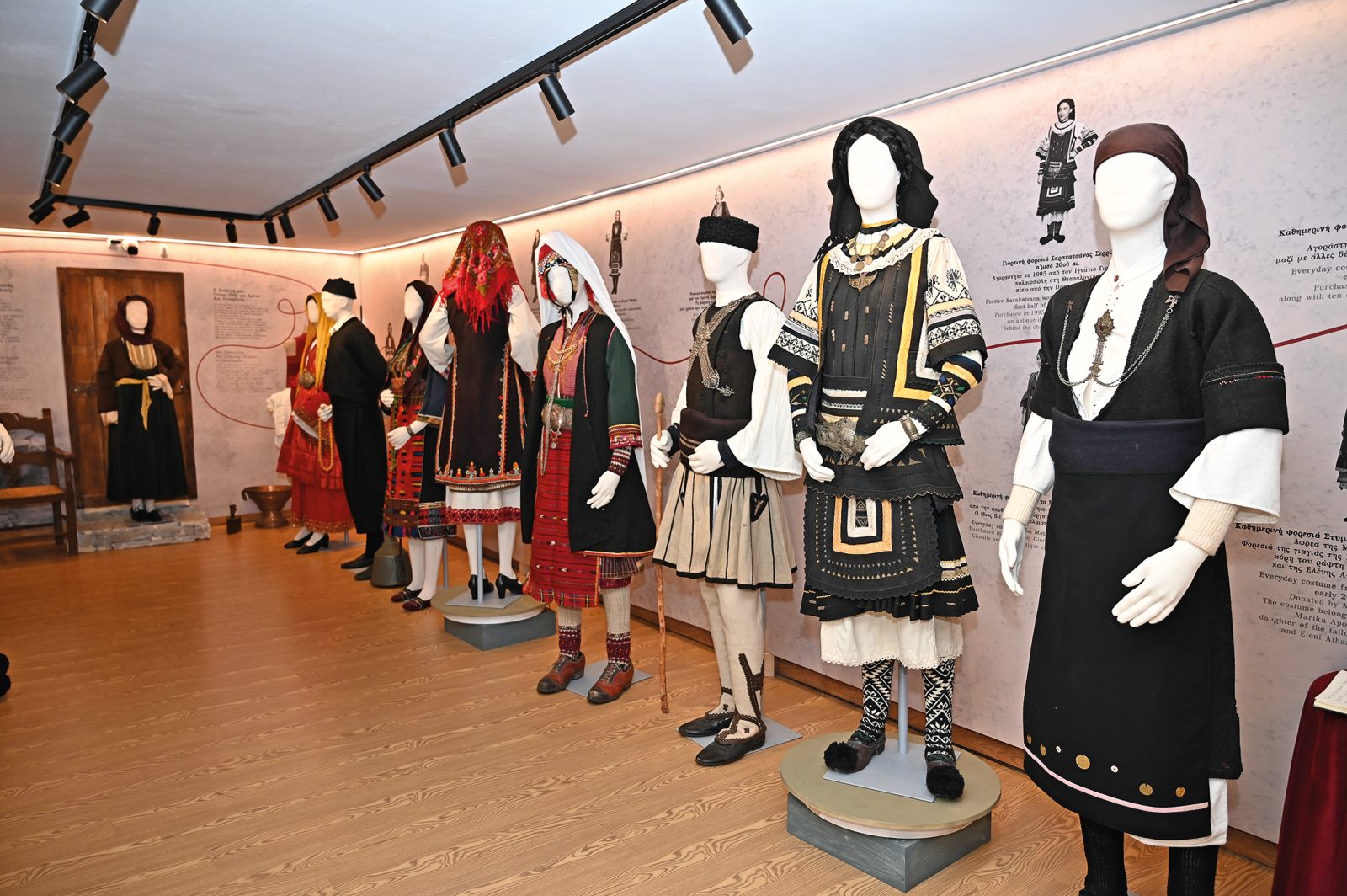 Οι παραδοσιακές ελληνικές φορεσιές που εκτίθενται στο χώρο του Δρόμου του Μεταξιού. Φωτό: Γιώργος Καπράνος