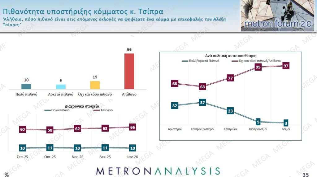 Στην πρώτη περίπτωση 72% απαντά ότι είναι απίθανο να το ψήφιζε ενώ στην δεύτερη περίπτωση αυτό το ποσοστό καταγράφεται στο 66%.