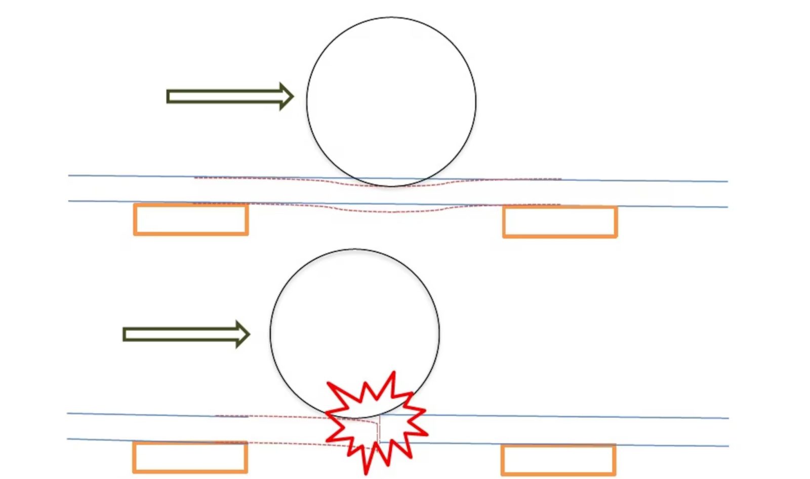 - Δημιουργία «Σκαλοπατιού»: Το ένα τμήμα της ράγας υποχωρεί υπό το βάρος του τροχού, ενώ το επόμενο παραμένει σταθερό.