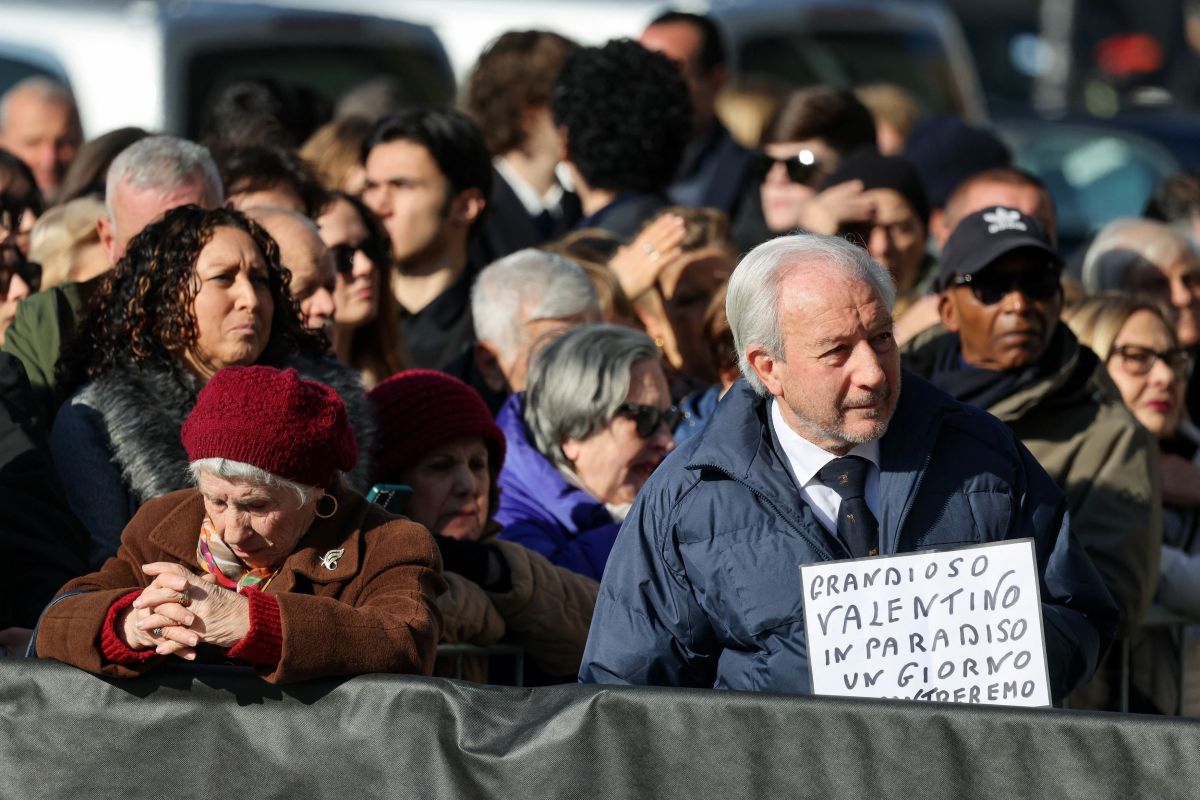 Νωρίς το πρωί, μια αδιάκοπη ροή από στεφάνια λευκών λουλουδιών μεταφερόταν στο εσωτερικό της Βασιλικής. Απλοί άνθρωποι περίμεναν στην ουρά έξω από την εκκλησία, κάποιοι ντυμένοι στα κόκκινα ή κρατώντας κόκκινες τσάντες, πορτοφόλια και κασκόλ, φόρο τιμής στο χαρακτηριστικό κόκκινο χρώμα του σχεδιαστή. Ένας θαυμαστής έξω από τον ναό κρατούσε ένα λαμπερό μαύρο πλακάτ προς την κάμερα, που έγραφε: «Αντίο Valentino. Ο τελευταίος αυτοκράτορας της μόδας.