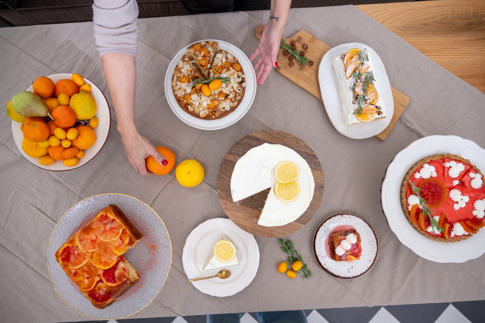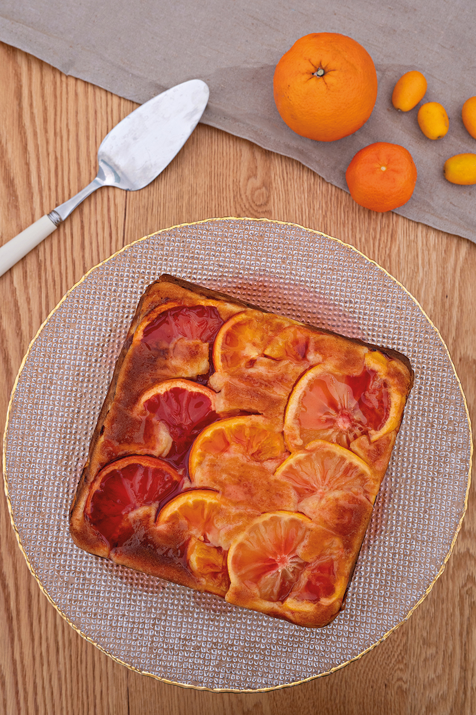 Πλάι της και αυτές των υπόλοιπων εσπεριδοειδών που τούτη εδώ την εποχή γνωρίζουν τις μεγαλύτερές τους δόξες. Μανταρίνια, λεμόνια, γκρέιπ φρουτ και περγαμόντα, ακόμη και τα πιο “εξωτικά” κουμ κουατ, γίνονται ο αρωματικός καμβάς για εκείνες τις ημέρες που απλώς θέλεις να καθίσεις στο σπίτι απολαμβάνοντας ένα ζεστό ρόφημα και ένα ωραίο γλυκό. Ένα γλυκό σαν αυτά που εμπνεύστηκε για εμάς η Νάντια Πολυζώη.