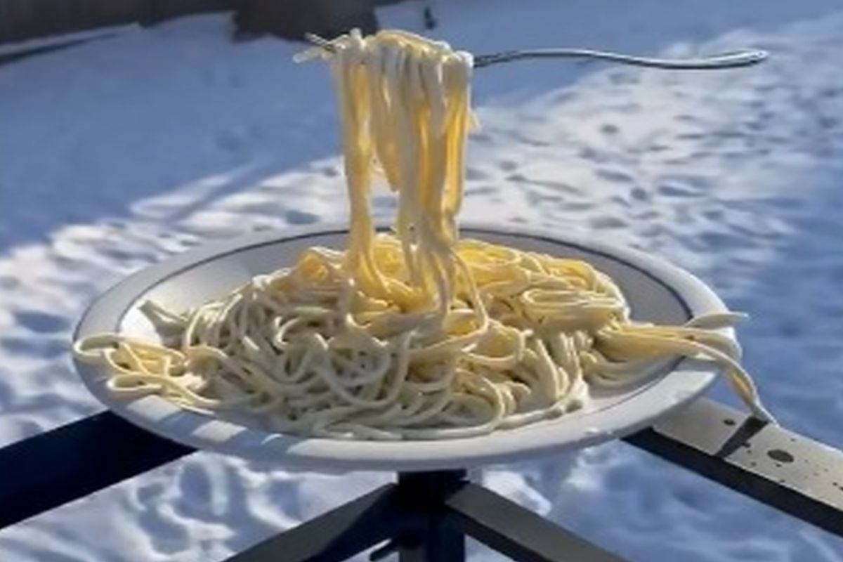 Viral έγινε το βίντεο από τη Μινεσότα, με το θερμόμετρο να δείχνει -29°C δημιουργώντας ένα θέμα άκρως εντυπωσιακό: μακαρόνια παγώνουν αμέσως στον αέρα!