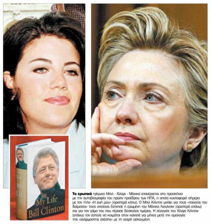 »Ένα από αυτά τα μυστικά ήταν και η σχέση του με την 21χρονη Μόνικα Λιουίνσκι. Στο βιβλίο εκφράζει και πάλι τη μεταμέλειά του και αποδίδει την “ανάρμοστη σχέση” στις σκοτεινές δυνάμεις της προσωπικότητάς του και στους “παλιούς δαίμονες” του χαρακτήρα του.