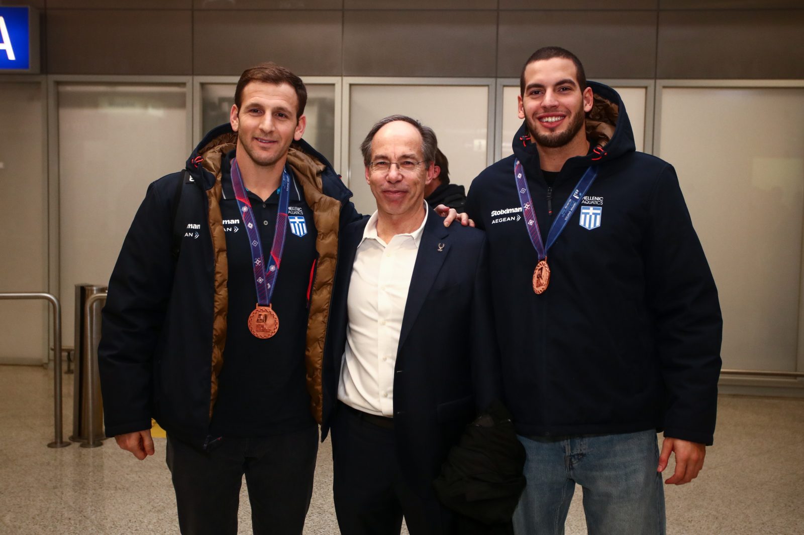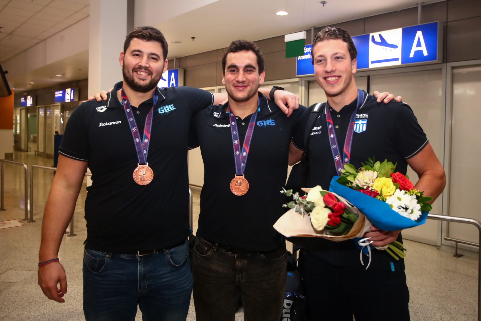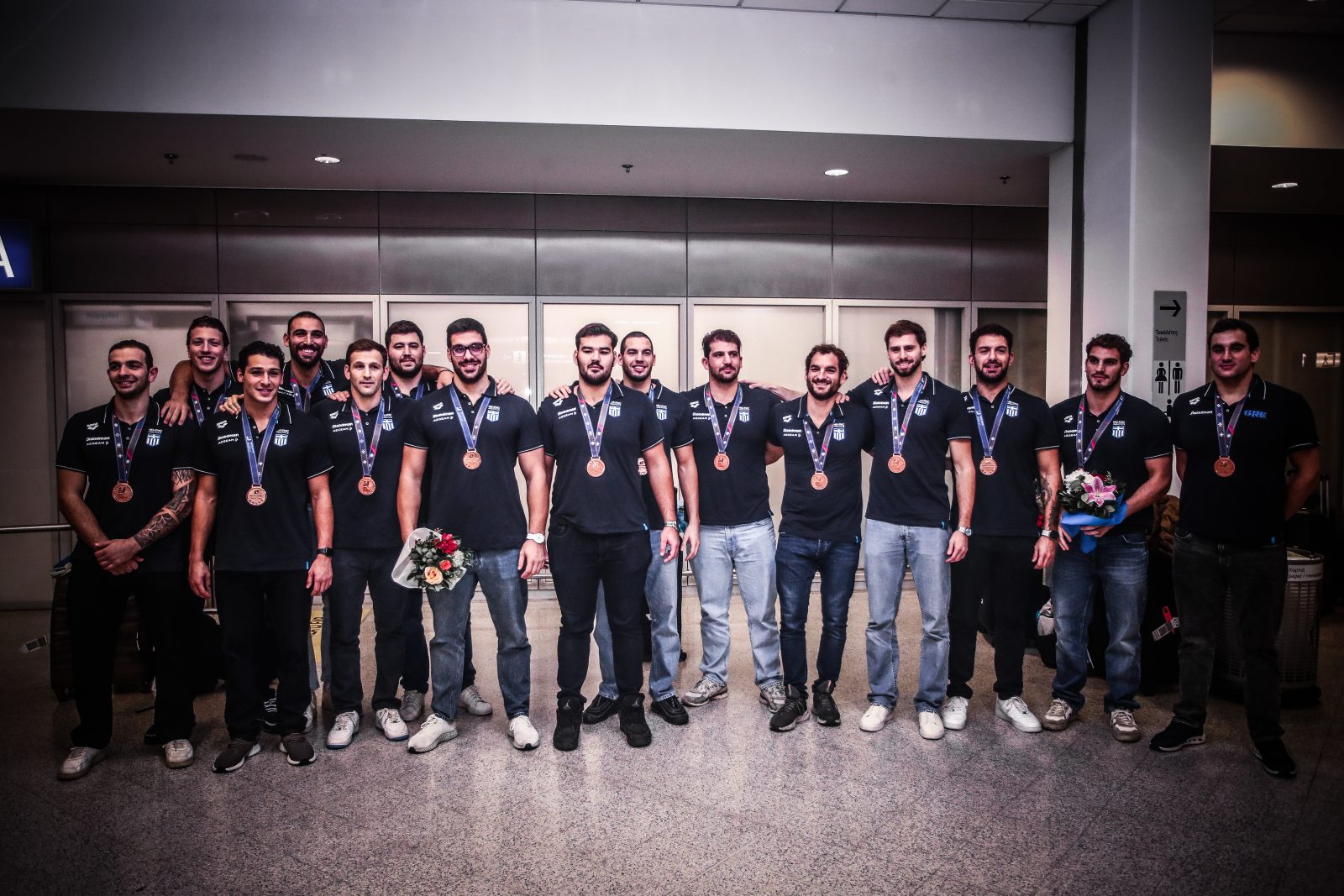 Ο Θοδωρής Βλάχος και οι παίκτες του έφτασαν χαμογελαστοί και φυσικά φορώντας το μετάλλιο στο στήθος, το οποίο ήταν το πρώτο για το αντιπροσωπευτικό συγκρότημα των ανδρών στην ιστορία σε αυτή τη διοργάνωση.