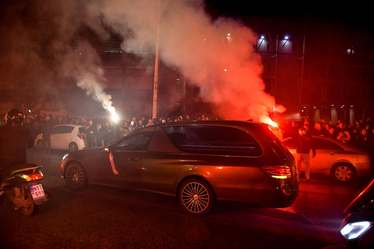 Οι νεκροφόρες πλησιάζουν στο γήπεδο της Τούμπας, εκατοντάδες μοτοσικλέτες συνοδεύουν την πομπή κορνάροντας, οι πυρσοί ανάβουν και πολλοί από το πλήθος τραγουδούν το αγαπημένο σύνθημα των οργανωμένων οπαδών του Δικεφάλου «…και όταν θα πεθάνω, θέλω τον Δικέφαλο στον τάφο μου επάνω».
