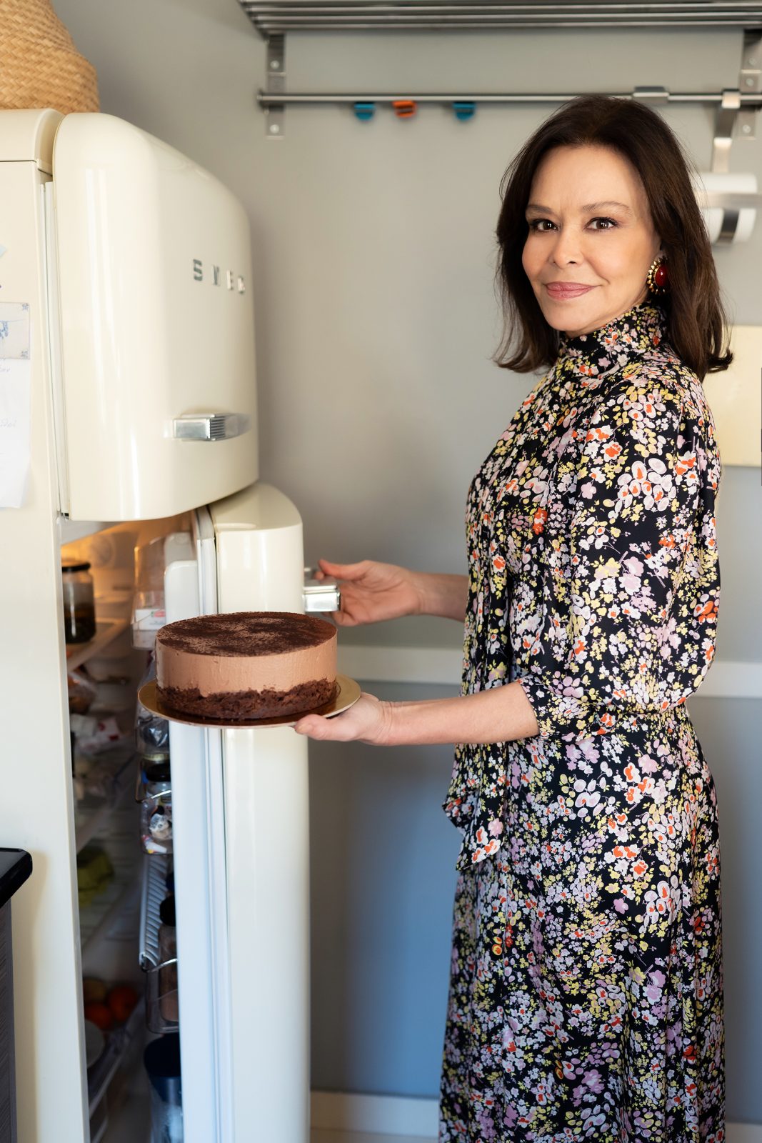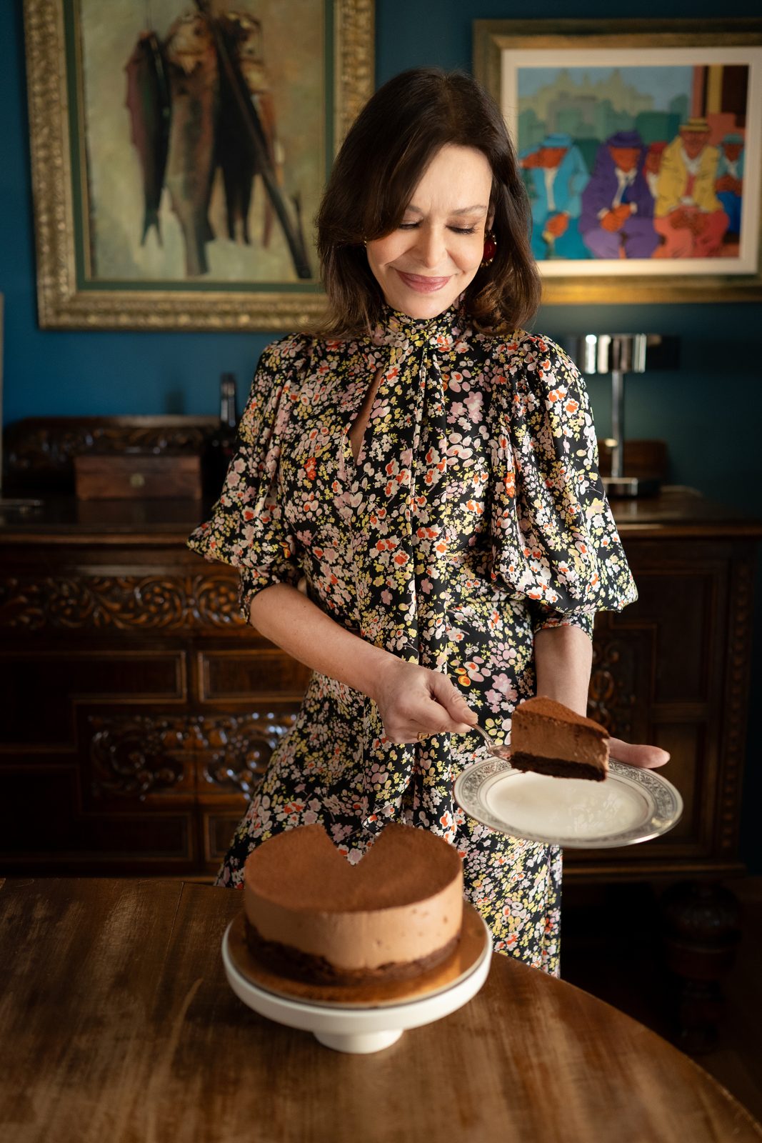 Στο διαμέρισμά της στην Αγία Παρασκευή, ένα κράμα ελληνικής και γαλλικής φινέτσας, μας υποδέχτηκε με ένα γλυκό που έχει γίνει trend στο TikTok, τρεις γάτες που έτρεχαν να κρυφτούν και να διασφαλίσουν την ησυχία τους, έργα τέχνης και κομψά σερβίτσια που μαρτυρούν την αγάπη της για ομορφιά. Παρακολουθώντας την, σκέφτηκα πως θα μπορούσε εύκολα να έχει δημιουργηθεί από σοκολάτα. Όχι σοκολάτα σε καλούπι, αλλά από εκείνη που ρέει ασταμάτητα. Κάναμε γρήγορα τη φωτογράφιση και ξεκινήσαμε τη συζήτησή μας: