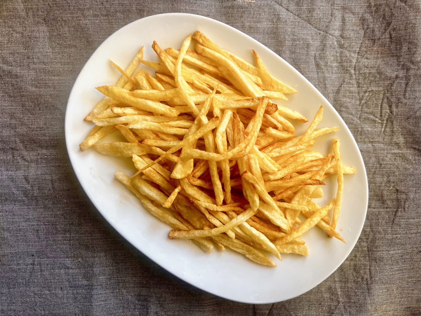 Αργότερα που άρχισα να διαβάζω διάφορα άρθρα γαστρονομικά και να μιλάω με μαγείρους, κατάλαβα πως υπήρχαν πολλά μυστικά για την τέλεια τηγανητή πατάτα. Άλλοι τις άφηναν στο νερό και άλλοι όχι. Άλλοι τις προτηγάνιζαν. Μερικοί τις έβαζαν στην κατάψυξη. Πολλοί ορκίζονταν στο τηγάνισμά τους με ηλιέλαιο και ακόμα περισσότεροι υπεραμύνονταν του τηγανίσματος με αγνό ελαιόλαδο. Άλλοι τις αλάτιζαν από πριν, άλλοι μετά και άλλοι είχαν να προτείνουν πολλά διαφορετικά αλάτια για τη σωστή απόλαυσή τους.