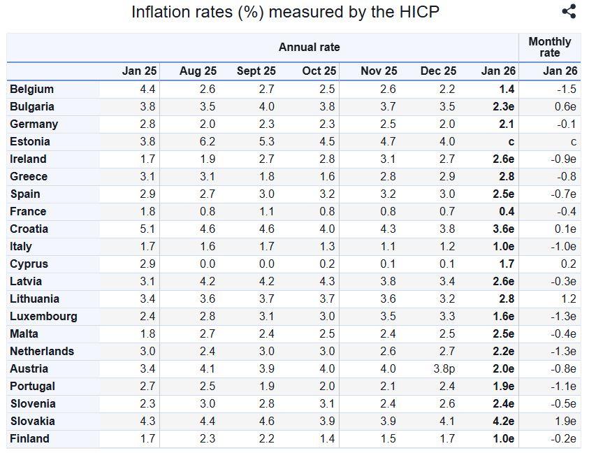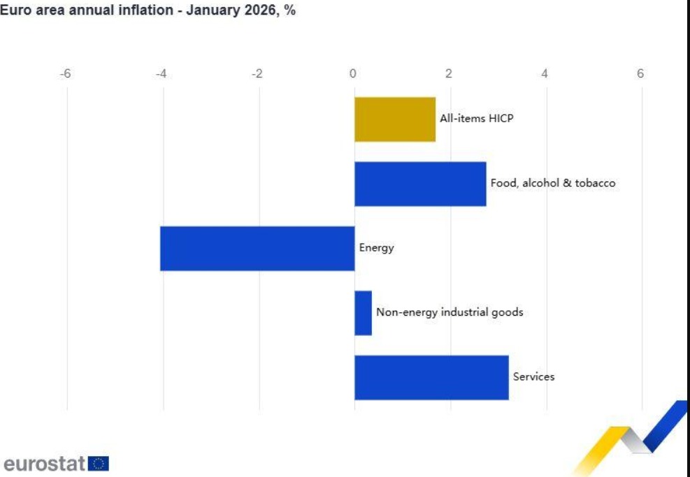 Στην ευρωζώνη ο ετήσιος πληθωρισμός αναμένεται να διαμορφωθεί στο 1,7% τον Ιανουάριο του 2026, από 2,0% τον Δεκέμβριο.