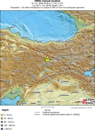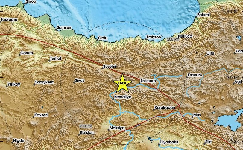 Σεισμός μεγέθους 4,9 Ρίχτερ σημειώθηκε στην περιοχή Κεμάχ του Ερζιντζάν στην Τουρκία.