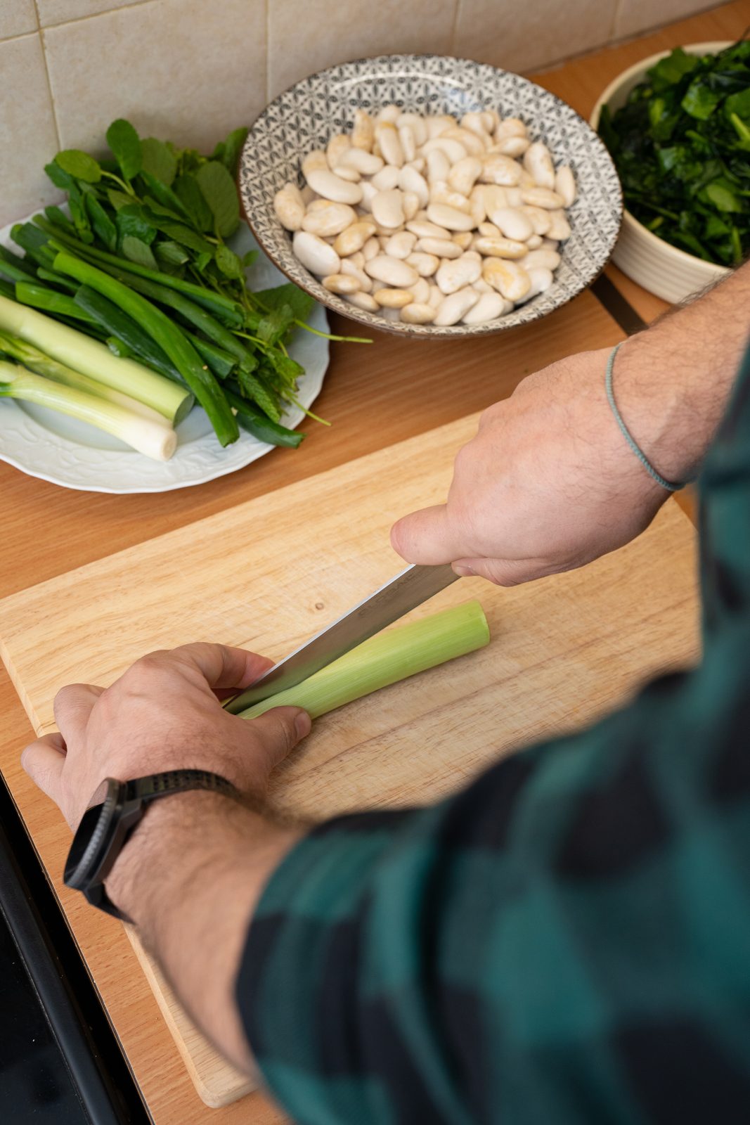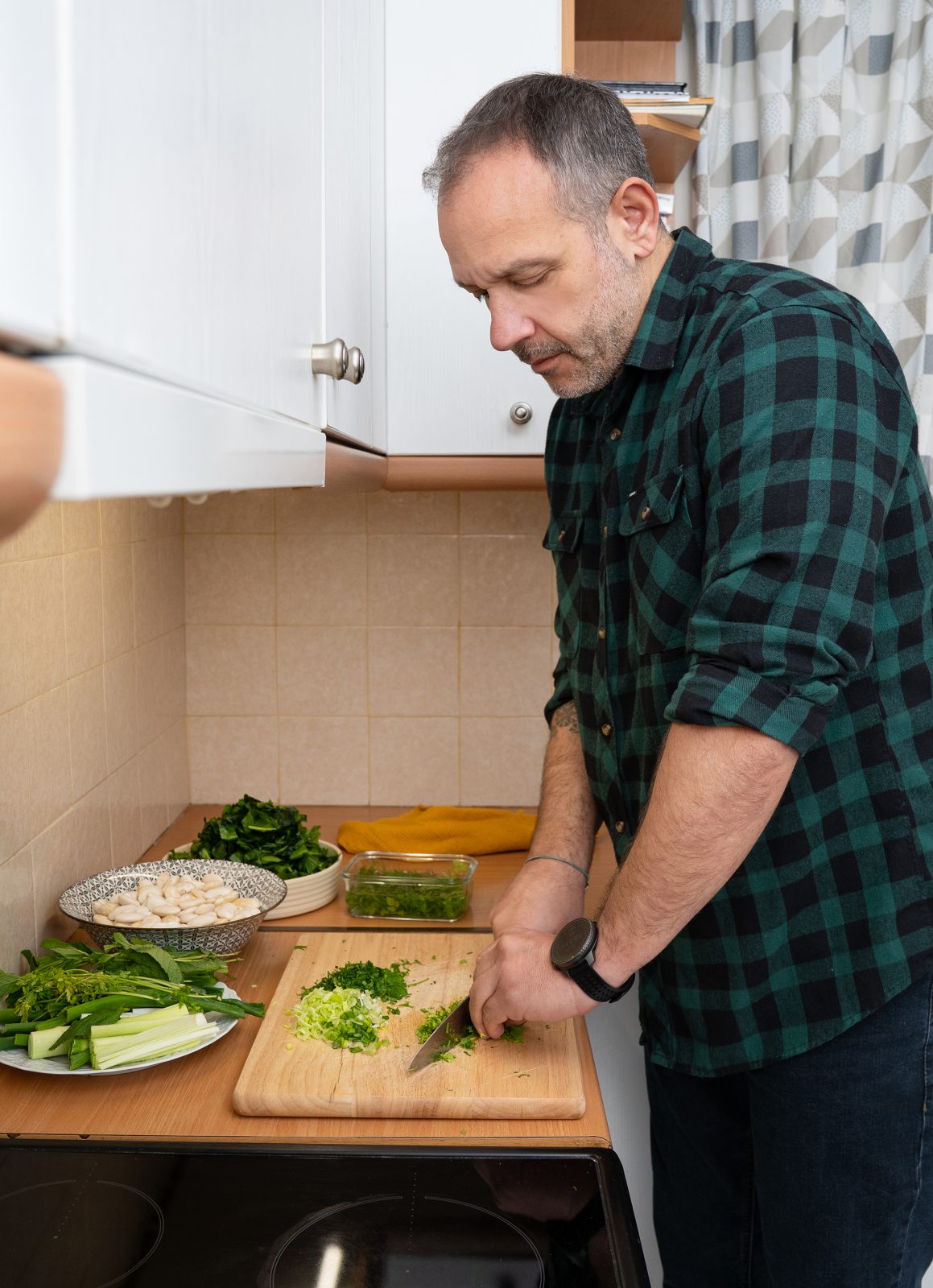 Ειδικά για εμάς, ο Γιάννης Λιόκας μπήκε στην κουζίνα του σπιτιού του, εκεί όπου μαγειρεύει κυρίως η Ντένια, η σύζυγός του, για να μας φτιάξει ένα φαγητό του τόπου του. Φωτό: Χρήστος Καββούρης