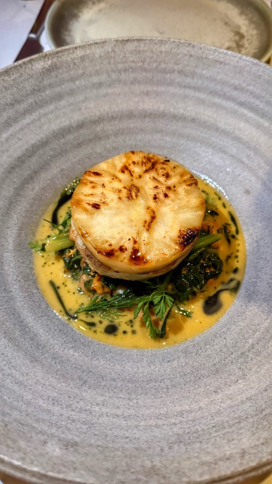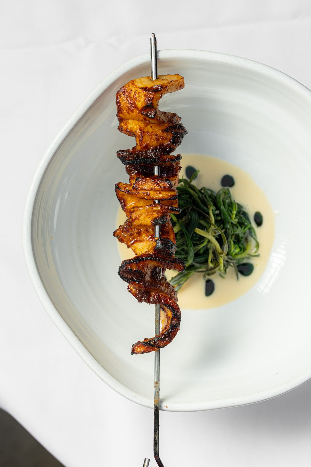 Πάντα υπάρχει χώρος για παράδοση σε μια εκλεπτυσμένη κουζίνα. Ένα χαρακτηριστικό πιάτο από το μενού του Monzu.