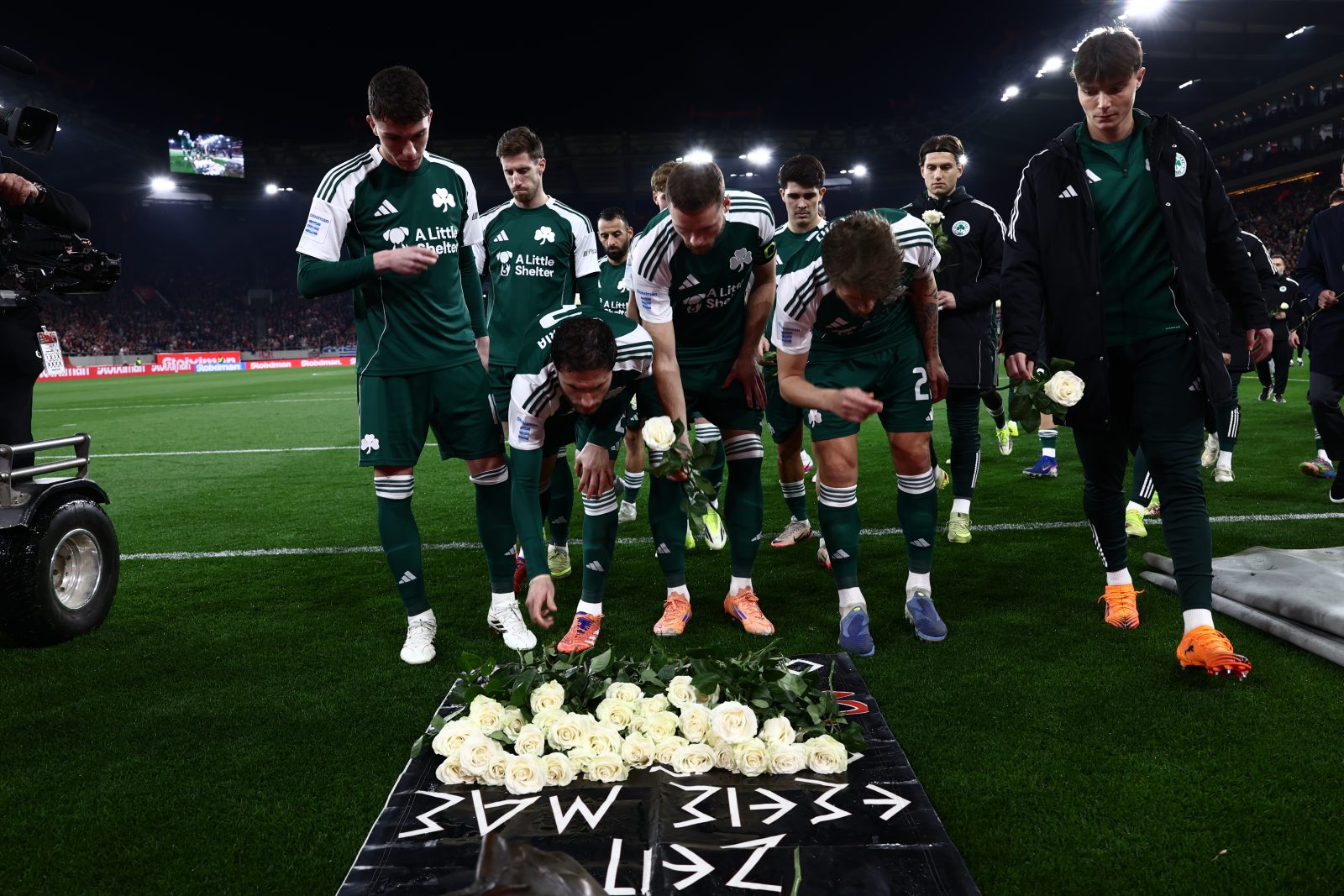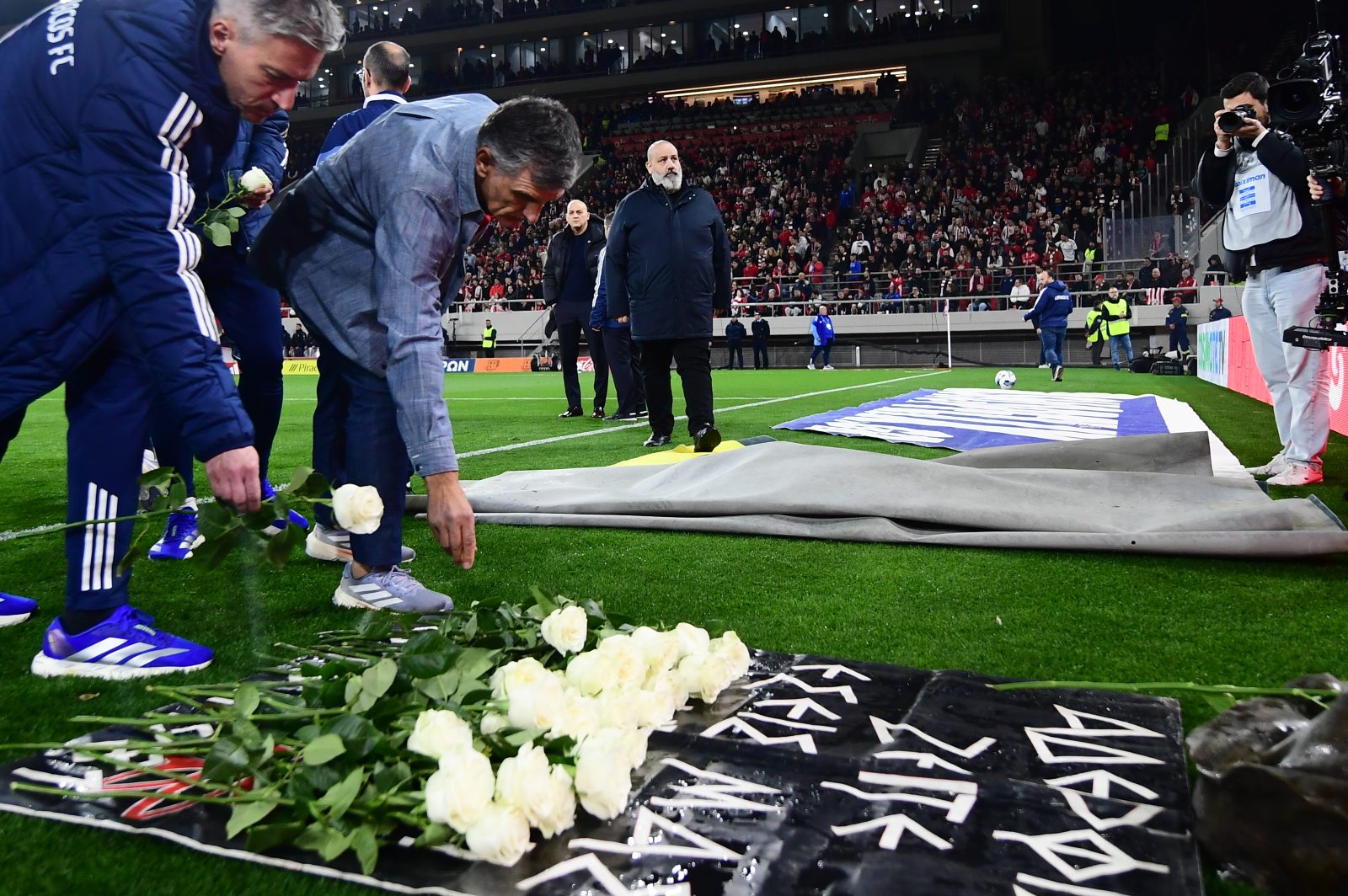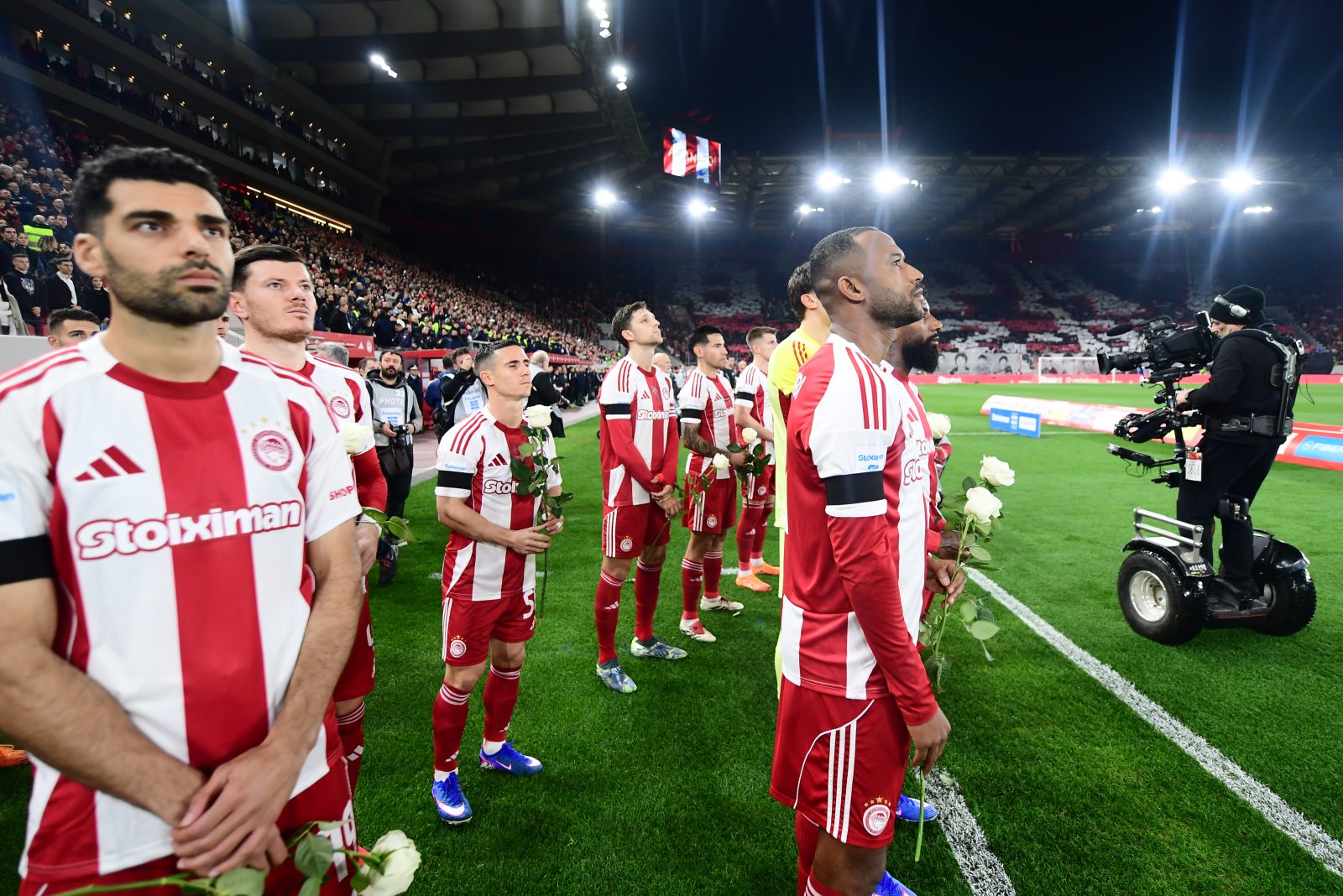 Πριν την έναρξη του αγώνα τηρήθηκε ενός λεπτού σιγή και η ιαχή «αδέρφια ζείτε εσείς μας οδηγείτε», δόνησε την ατμόσφαιρα στο φαληρικό γήπεδο.