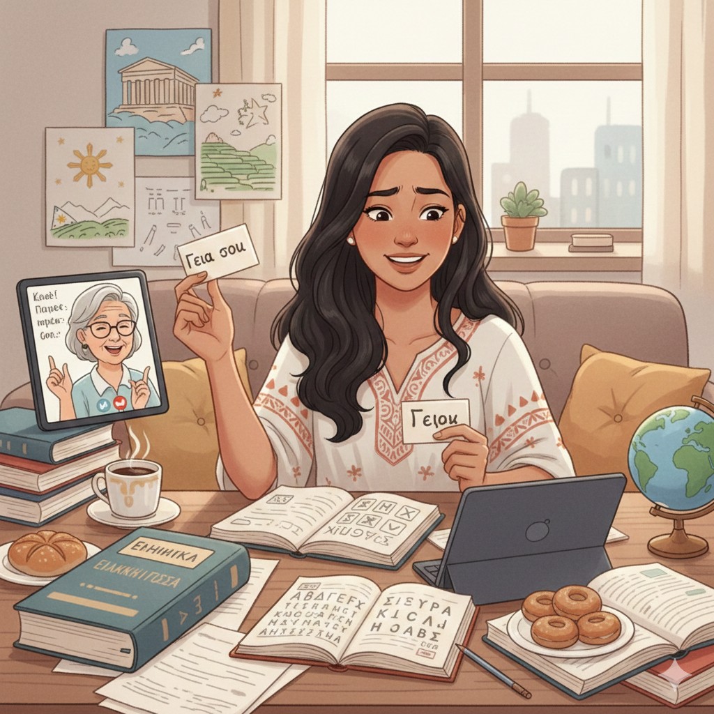 Η γραμματική ήταν, και ειλικρινά παραμένει, η μεγαλύτερη πρόκληση. Η ελληνική γραμματική σού διδάσκει ταπεινότητα. Αυτό που με βοήθησε ήταν η συνέπεια αντί για το κυνήγι της τελειότητας.