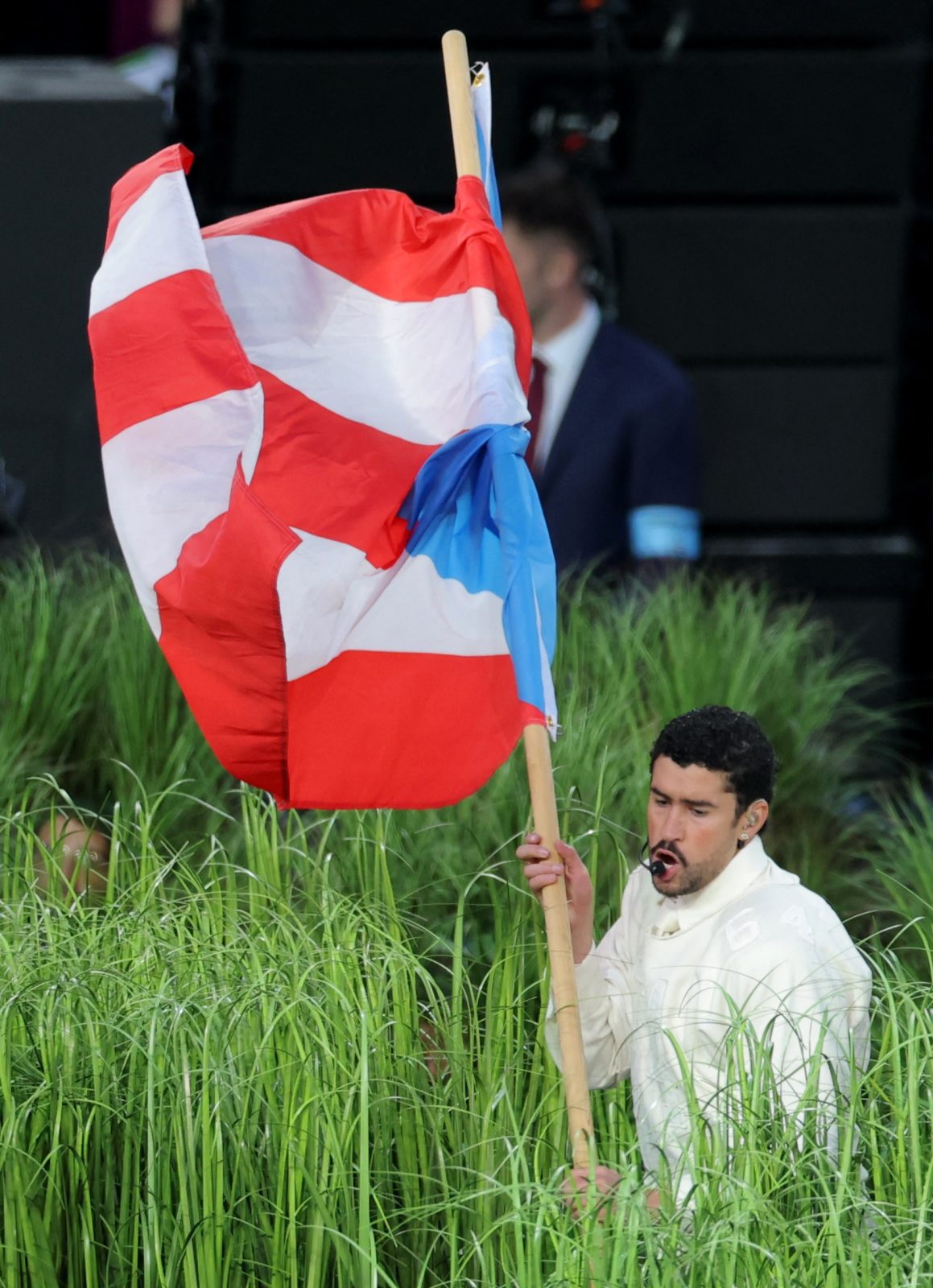 Ο Bad Bunny υψώνει την αυθεντική σημαία του Πουέρτο Ρίκο μέσα στο γήπεδο