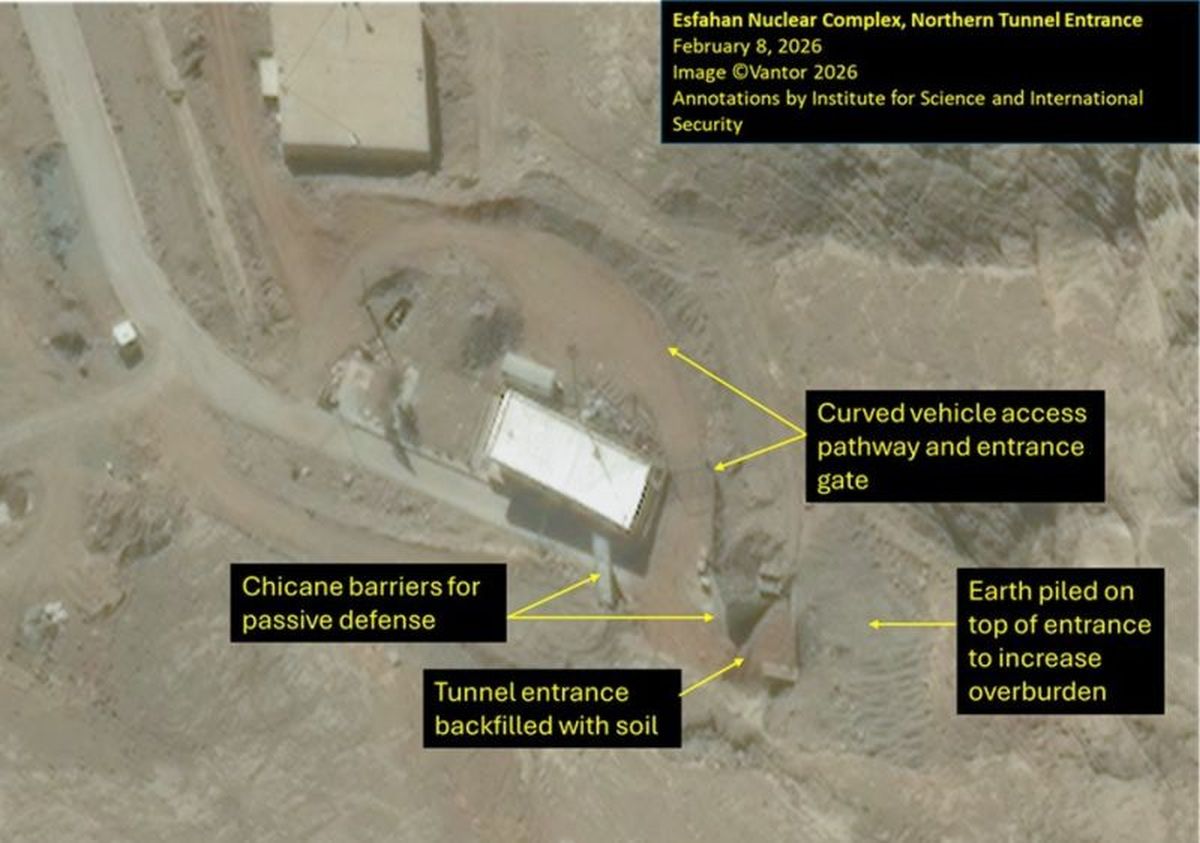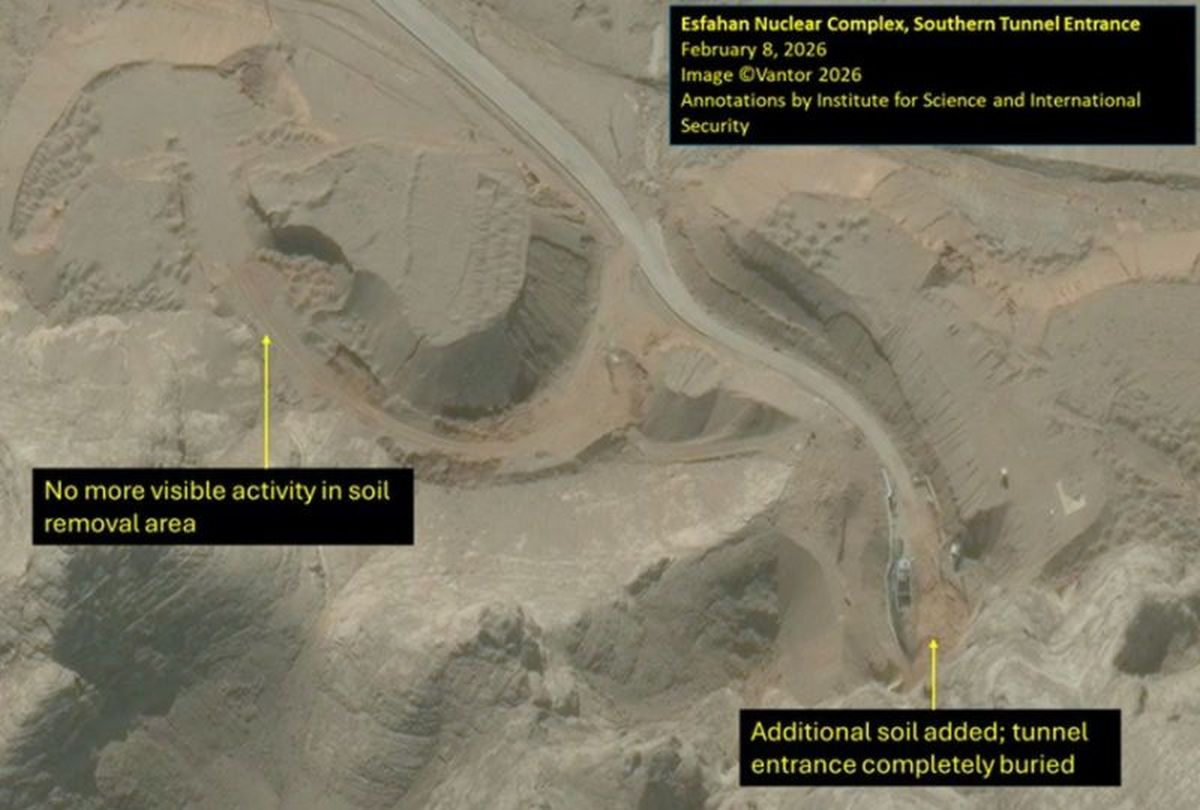 Δορυφορικές εικόνες υψηλής ανάλυσης που ελήφθησαν χθες 9/2 δείχνουν τον βαθμό στον οποίο το Ιράν έχει καλύψει με χώμα τις εισόδους των σηράγγων στο πυρηνικό συγκρότημα του Εσφαχάν αναφέρει το Institute for Science and International Security.