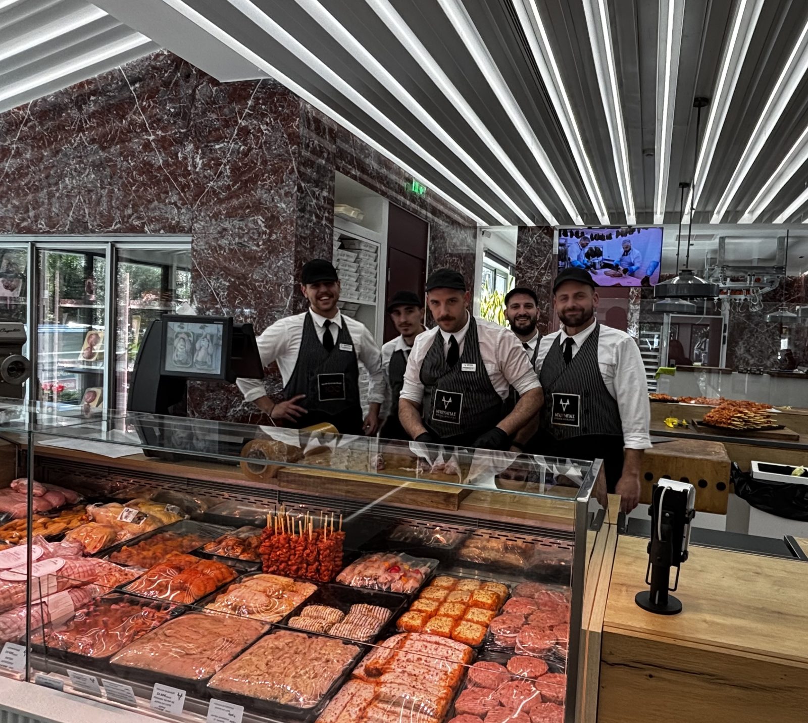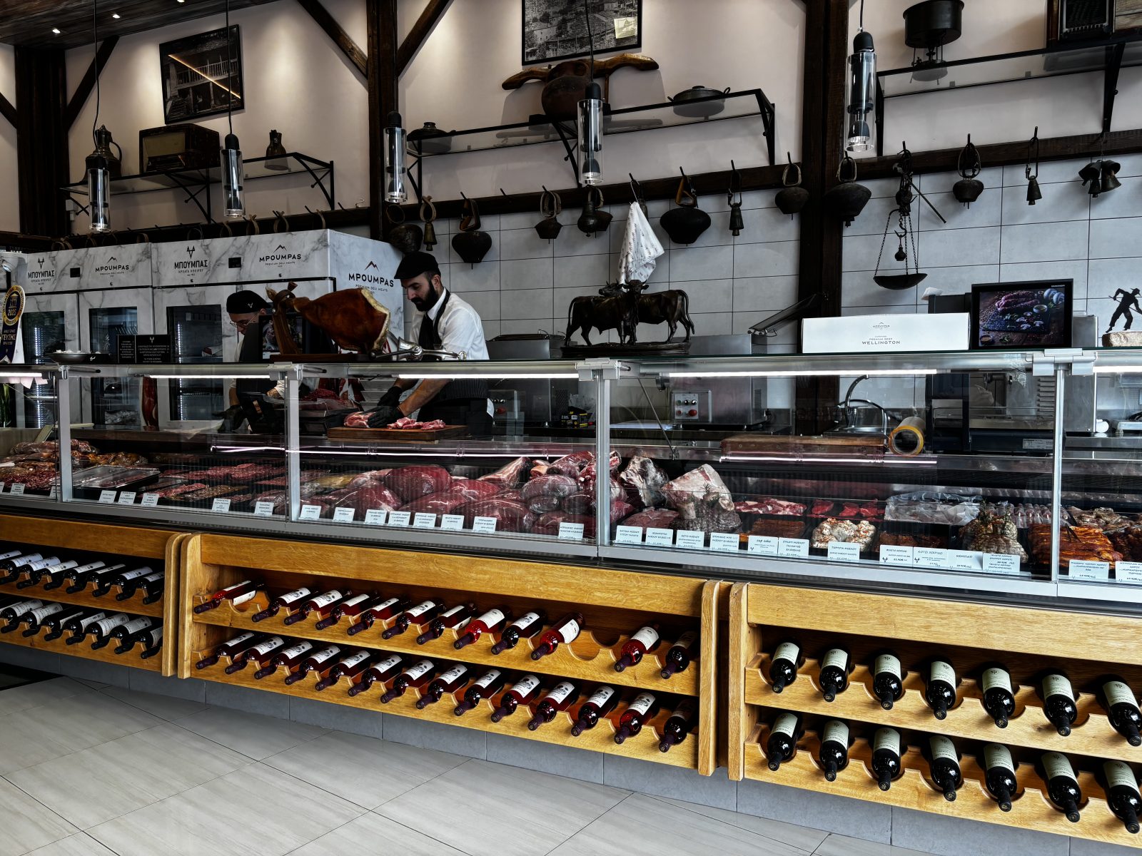 Οι κοπές όμως, οι συσκευασίες, τα ψυγεία και τα μηχανήματα τελευταίας τεχνολογίας διαθέτουν σύγχρονη αισθητική. Στις βιτρίνες, οι ηπειρώτικες μπριζόλες Tomahawk «βολεύονται» δίπλα σε βουβαλίσια T-bones ωρίμανσης 120 ημερών, πικάνια από ελληνικές μοσχίδες και πορκέτες μαύρου χοίρου. Αμνοερίφια και πουλερικά, μαζί και έτοιμες λύσεις όπως μπιφτέκια, ρολά με γραβιέρες, τρούφα ή χειροποίητο μπέικον, σουβλάκια, αρνάκι στη λαδόκολλα, όλα έτοιμα για ψήσιμο, πολλές φορές σε σακούλα μαγειρικής. Τα πάντα παρασκευάζονται in-house στις υπόγειες εγκαταστάσεις του καταστήματος της Κηφισιάς