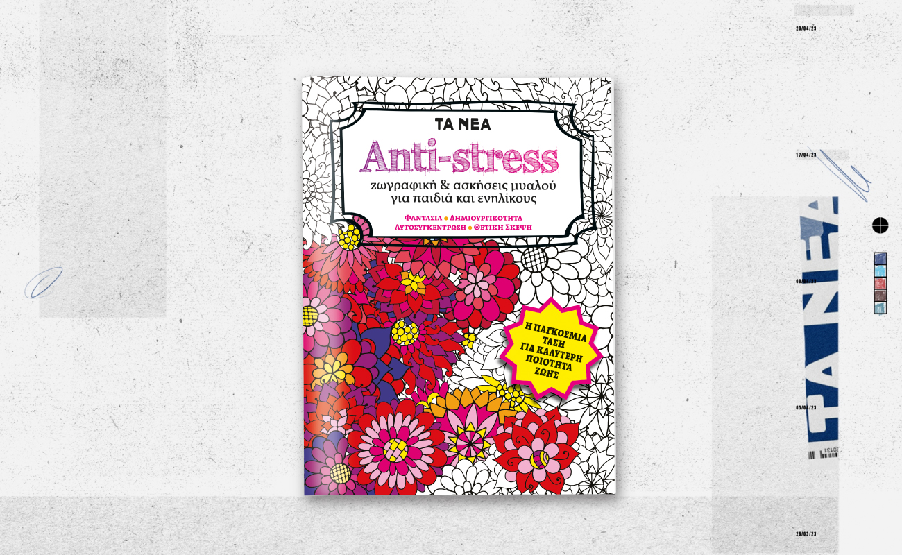 Η έκδοση «ANTI-STRESS ζωγραφική & ασκήσεις μυαλού για παιδιά και ενηλίκους» προσκαλεί τους αναγνώστες να αφήσουν για λίγο στην άκρη οθόνες και υποχρεώσεις και να πιάσουν μολύβια, μπογιές, μαρκαδόρους ή χρωματιστά στιλό. Ό,τι κι αν προτιμά κανείς, αρκεί για να ξεκινήσει ένα δημιουργικό ταξίδι στις σελίδες του βιβλίου.
