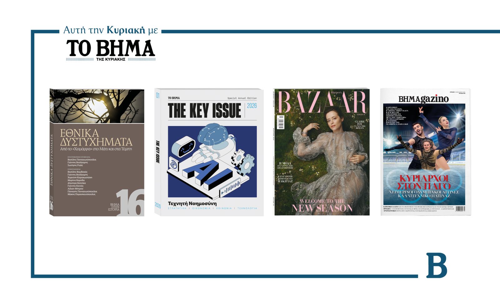 Την Κυριακή 15 Φεβρουαρίου το «Βήμα της Κυριακής» κυκλοφορεί με συναρπαστικές προσφορές: Η έκδοση «The Key Issue», ο 16ος τόμος της σειράς «ΒΗΜΑ ΣΤΗΝ ΙΣΤΟΡΙΑ», το περιοδικό Harper’s Bazaar και όπως κάθε Κυριακή, ΒΗΜΑGAZINO.