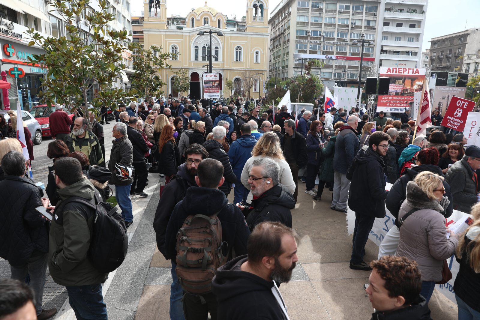 Στιγμιότυπο από απεργιακή συγκέντρωση του εργατικού κέντρου Πειραιά