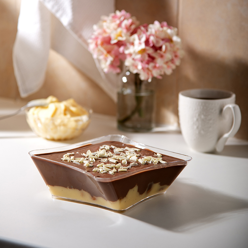 Μόλις 25 θερμίδες για μία πλούσια μπουκιά μαλακής σοκολάτας που είναι κάτι ανάμεσα σε σουφλέ και moelleux. Το τέλειο κέρασμα για όλους, ακόμα και για εκείνους που προσέχουν. Και αφού περάσετε από εκεί, δοκιμάστε και την πάστα με μους από στραγγιστό γιαούρτι, καρδιά από κουλί φράουλα και βατόμουρο και ντακουάζ φιστικιού Αιγίνης. Είναι τέλεια –και με μόλις 190 θερμίδες.