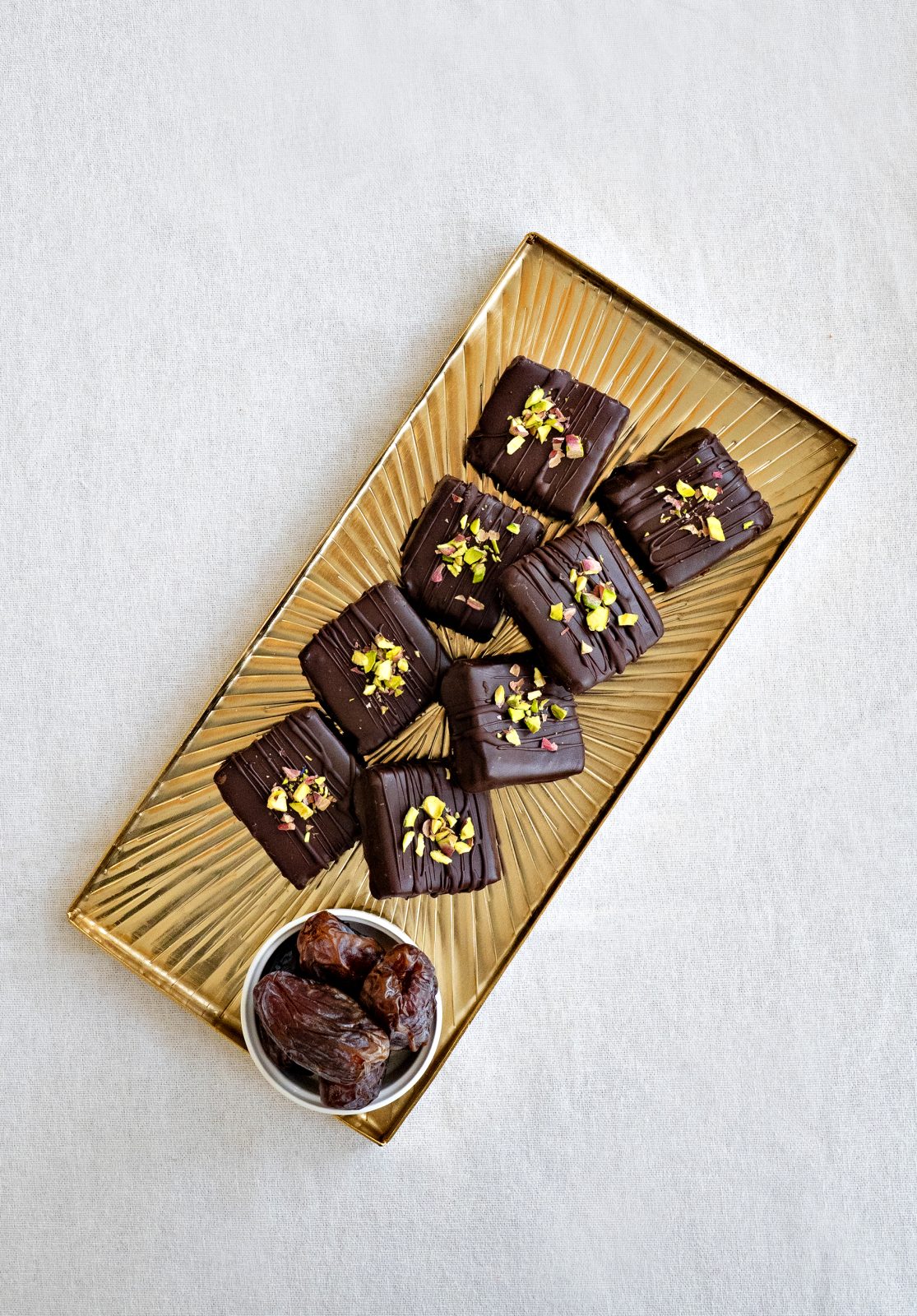 - Αφού κρυώσει καλά και σταθεροποιηθεί το μείγμα, το κόβουμε σε τετράγωνα κομμάτια ανάλογα με το μέγεθος που θέλουμε. Τα βουτάμε στη λιωμένη κουβερτούρα και τα αραδιάζουμε σε επιφάνεια στρωμένη με αντικολλητικό χαρτί. Τα μεταφέρουμε στο ψυγείο για 10 λεπτά, να κρυώσει και να σταθεροποιηθεί η επικάλυψη και σερβίρουμε. Διατηρούμε όσα περισσέψουν σε αεροστεγές δοχείο, σε θερμοκρασία δωματίου ή στο ψυγείο, για έως και πέντε ημέρες.