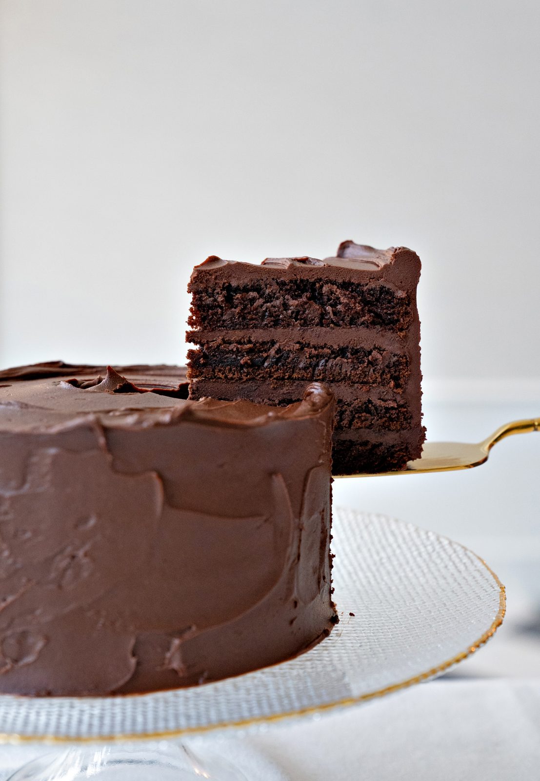 - Προθερμαίνουμε το φούρνο στους 175°C. Βουτυρώνουμε και αλευρώνουμε δύο στρογγυλά ταψιά 23 εκ. Ανακατεύουμε σε μια μπασίνα το αλεύρι, τη ζάχαρη, το κακάο, το μπέικιν πάουντερ, τη σόδα και το αλάτι.