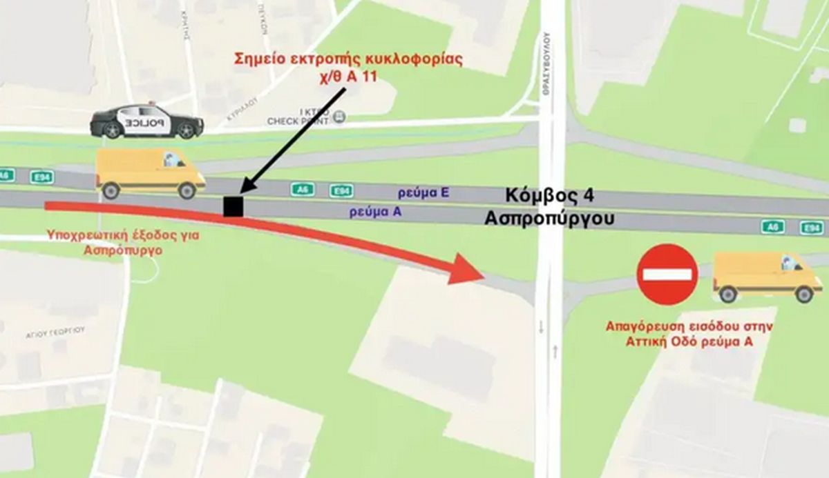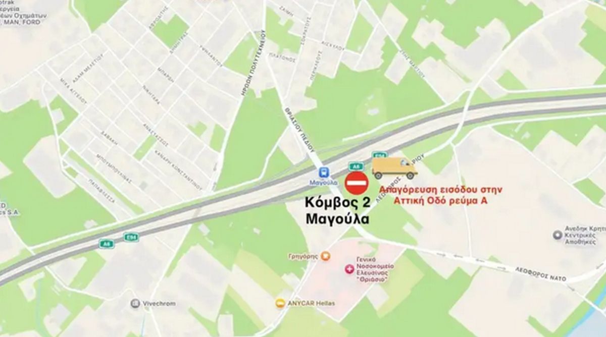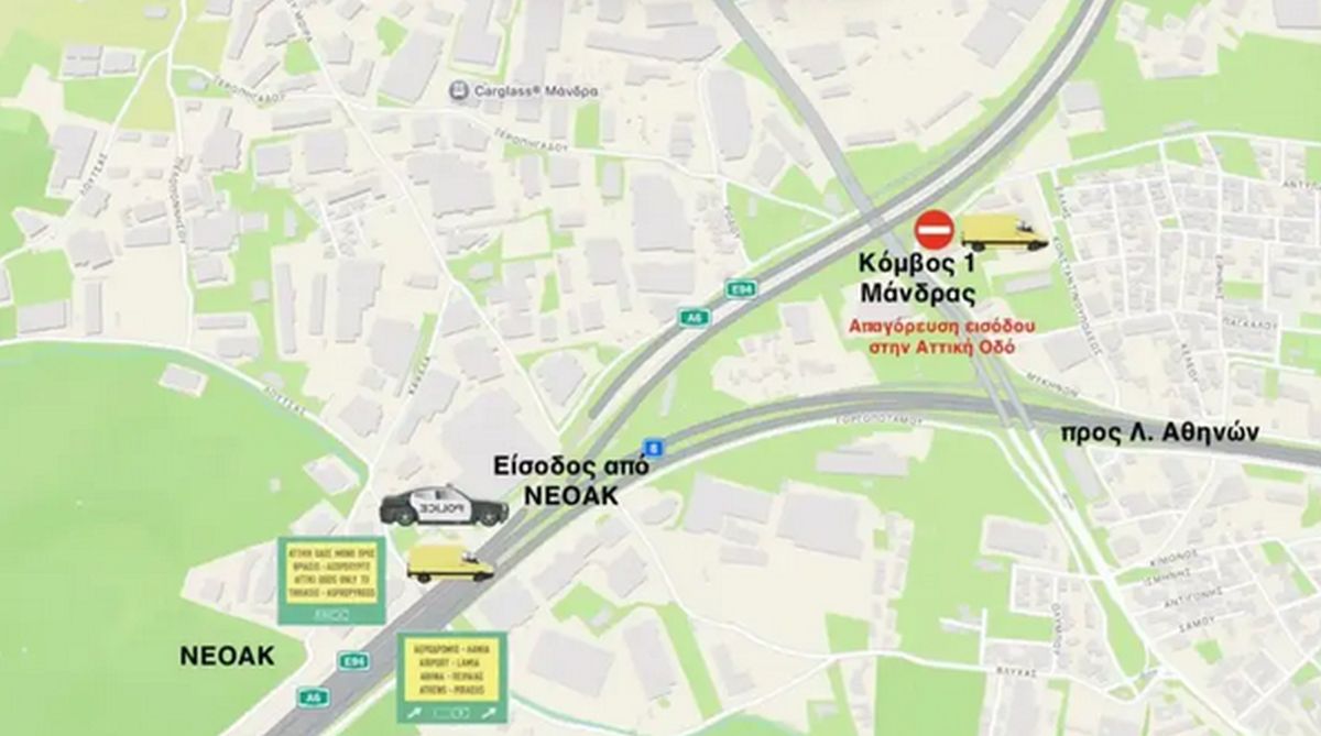 Κλειστές θα είναι και οι είσοδοι προς αεροδρόμιο στους κόμβους Μάνδρας, Μαγούλας, Ασπρόπυργου και Αιγάλεω.