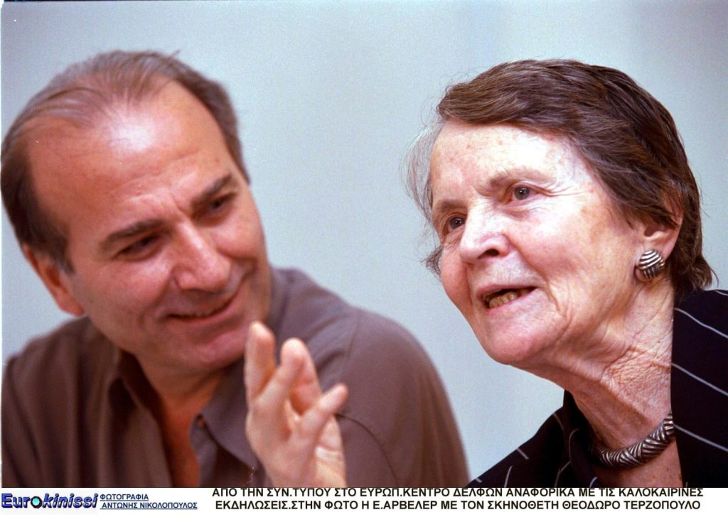 Η Ελένη Γλύκατζη-Αρβελέρ με τον Θεόδωρο Τερζόπουλο σε συνέντευξη τύπου στο Ευρωπαϊκό Κέντρο Δελφών.