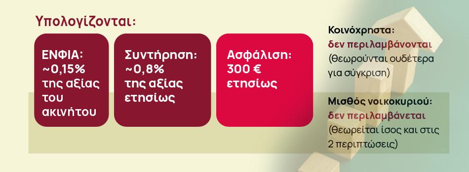 Κρίσιμη παράμετρος είναι πόσα χρήματα δαπανώνται και τελικά πόσα μένουν. Σε ορίζοντα 30ετίας, ο ιδιοκτήτης καταβάλλει συνολικά περίπου 562.000 ευρώ, ποσό που περιλαμβάνει προκαταβολή, δόσεις, τόκους και πάγια έξοδα. Ο ενοικιαστής, ανάλογα με την περιοχή, πληρώνει από 279.000 ευρώ (Πάτρα) έως 585.000 ευρώ (Γλυφάδα) σε ενοίκια. Η διαφορά είναι ότι ο πρώτος αποκτά περιουσιακό στοιχείο.