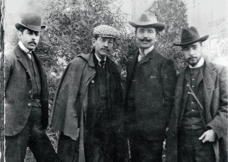 Ο Νίκος Καζαντζάκης (δεύτερος από δεξιά), στα φοιτητικά του χρόνια, με φίλους του (1905)