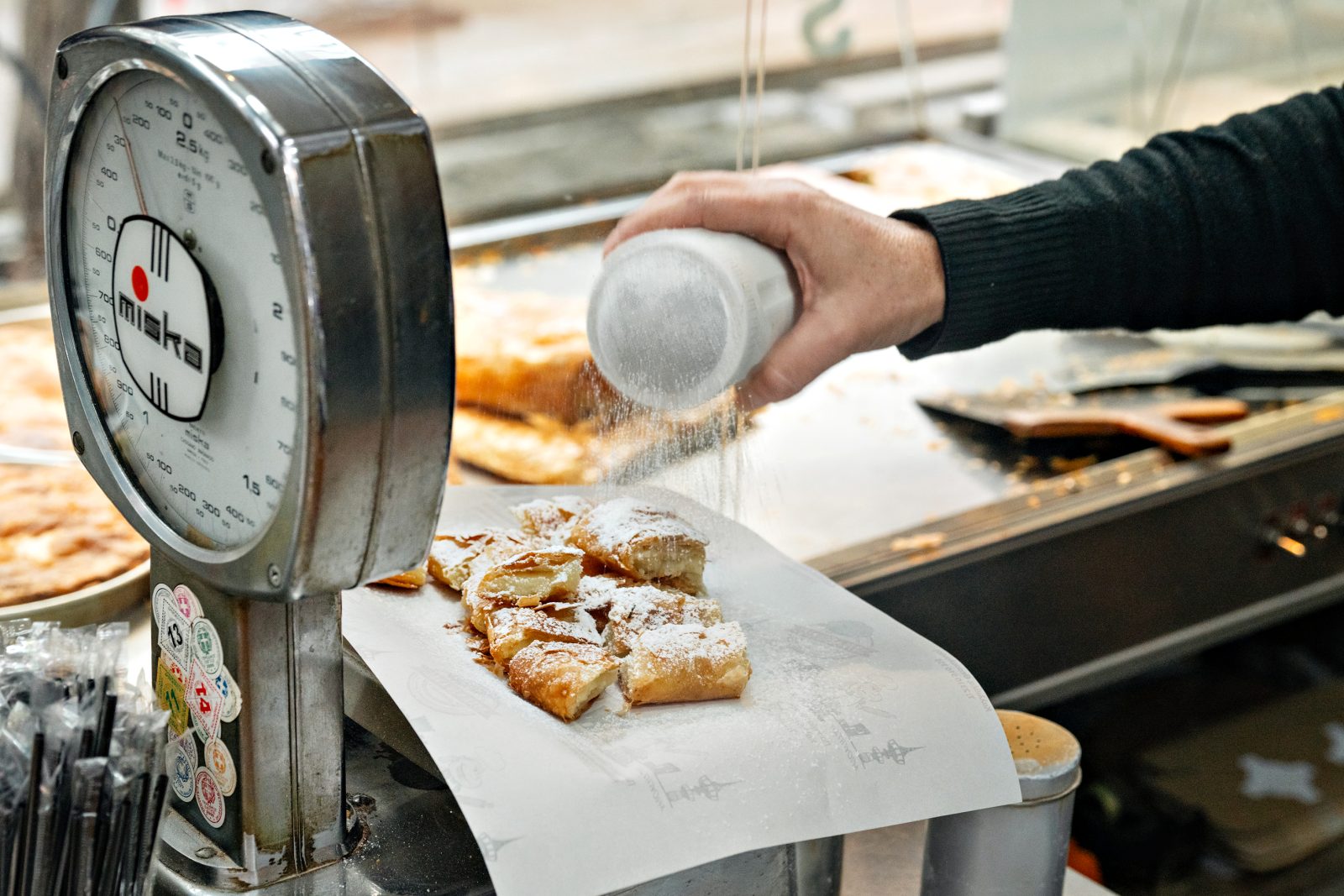 Η παραδοσιακή ζυγαριά πάνω στην οποία μπαίνει η μπουγάτσα για άχνισμα. Φωτό: Αλέξανδρος Αλεξανδρής