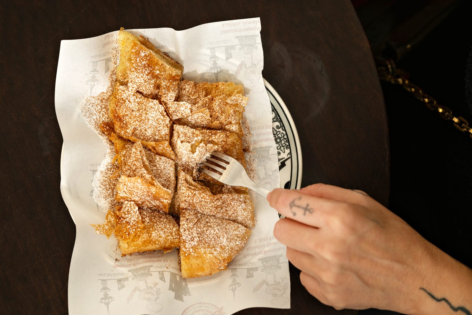 Μπαίνοντας στο μαγαζί, η μυρωδιά του φρέσκου φύλλου και του βουτύρου δημιουργεί μια σχεδόν συγκινητική αίσθηση οικειότητας. Είναι από εκείνες τις μυρωδιές που σε μεταφέρουν αλλού, προτού καν δοκιμάσεις την πρώτη μπουκιά.