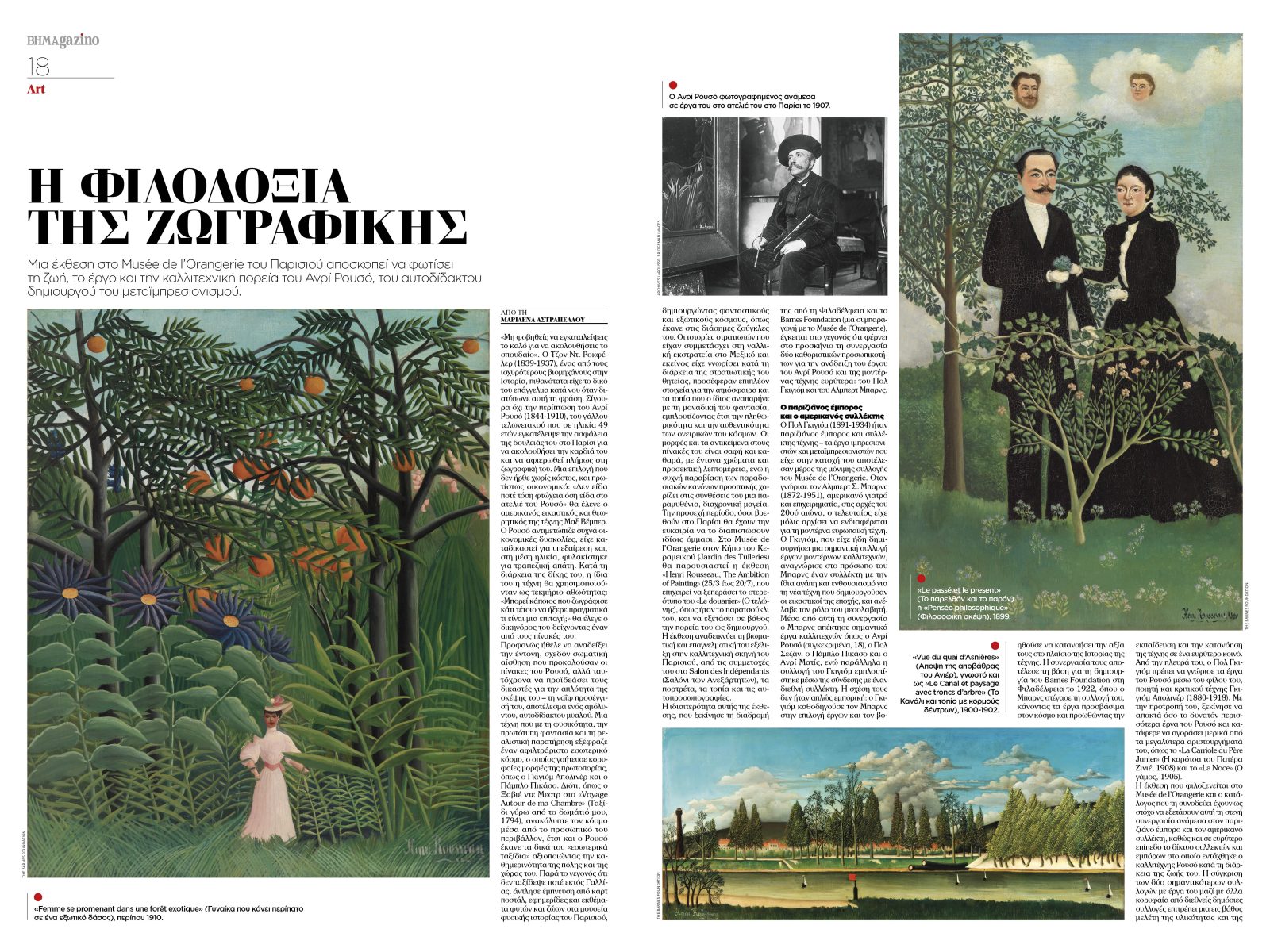 Η τέχνη έχει τη δική της ξεχωριστή θέση στο τεύχος, με μια μεγάλη έκθεση στο Musée de l’Orangerie να φωτίζει τη ζωή και το έργο του αυτοδίδακτου οραματιστή Henri Rousseau, αναδεικνύοντας τη διαδρομή του στον μεταϊμπρεσιονισμό και τη διαχρονική γοητεία της εικαστικής του γραφής.