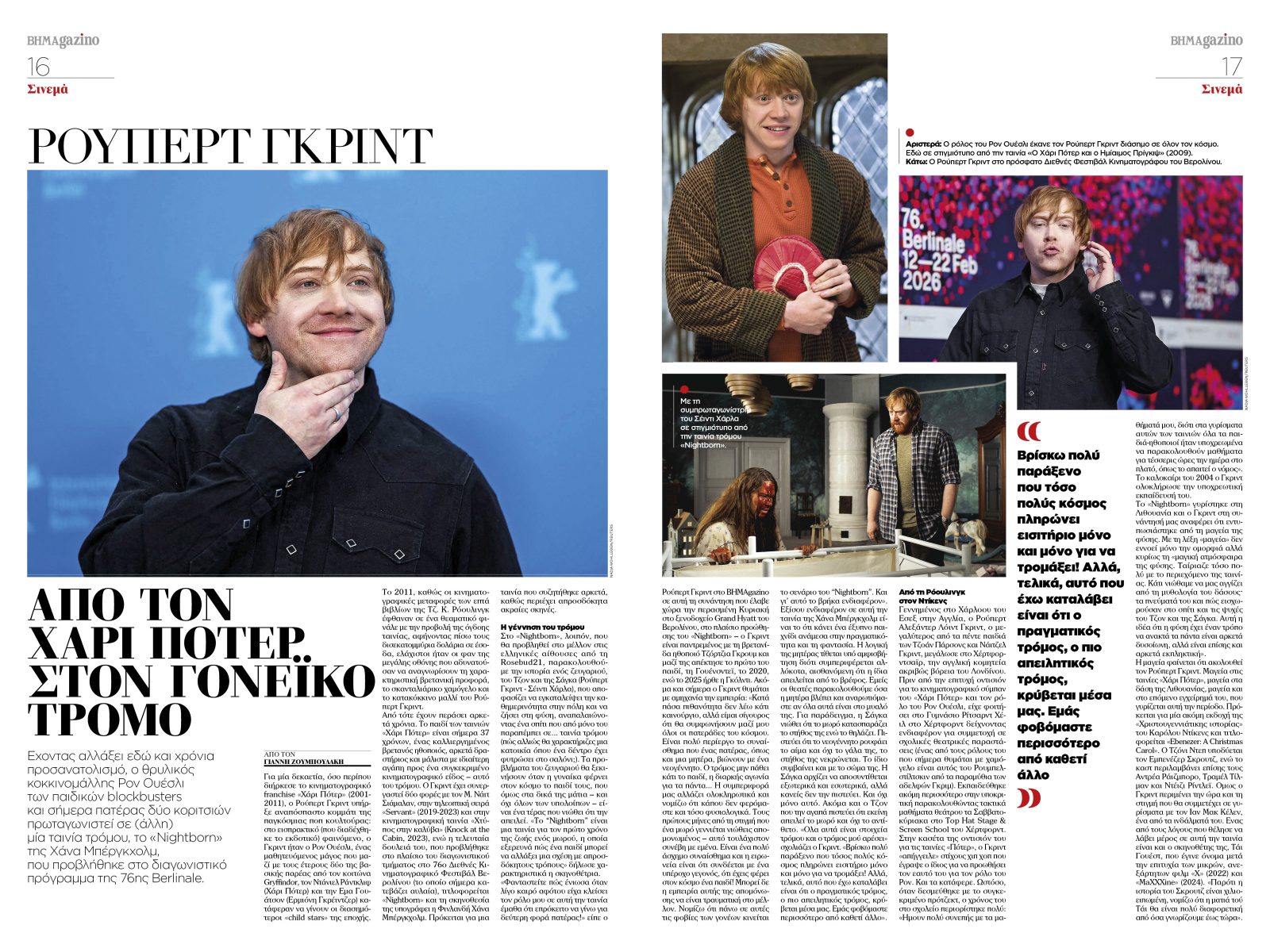 Στον κόσμο του θεάματος, ο Rupert Grint, ο αξέχαστος Ρον Ουέσλι του κινηματογραφικού σύμπαντος του Harry Potter and the Philosopher’s Stone, μιλά για τη μετάβασή του από τα παιδικά blockbusters στον σκοτεινό κινηματογραφικό τρόμο και τη συμμετοχή του στο «Nightborn», που προβλήθηκε στο διαγωνιστικό πρόγραμμα της Berlin International Film Festival, αλλά και για τον ρόλο του ως πατέρα δύο κοριτσιών.