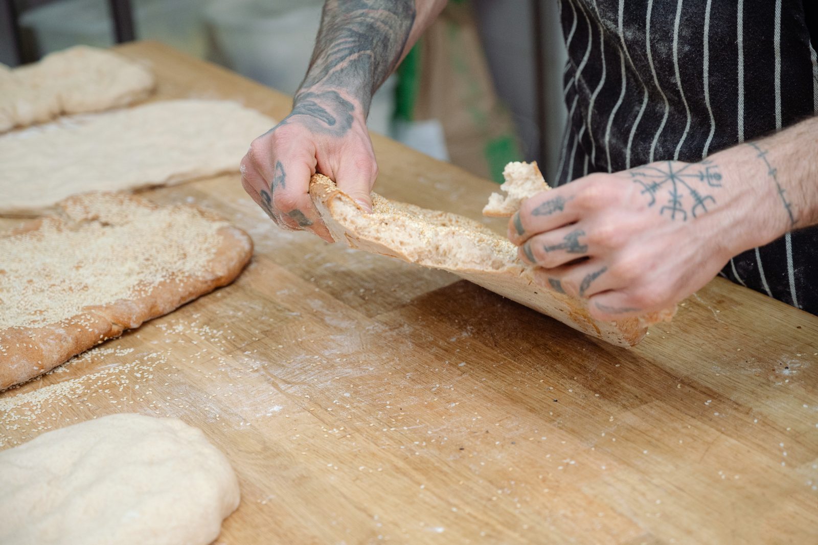 Στη συνέχεια, μας εξομολογείται ότι δεν θα είχε κανένα πρόβλημα να την απολαμβάνει όλη τον χρόνο, μαζί με τυριά και αλλαντικά ενώ τη φαντάζεται ακόμη και πάνω στο πασχαλινό τραπέζι, δίπλα στο αρνί και τα αβγά. Όπως καταλβαίνετε, πέσαμε ακριβώς επάνω στον baker που η λαγάνα του έχει πάρει τα μυαλά. Ίσως γι’ αυτό και έχει φτιάξει μια σπουδαία συνταγή γι’ αυτήν, απόλυτα ισορροπημένη και νόστιμη, την οποία και μοιράστηκε μαζί μας.