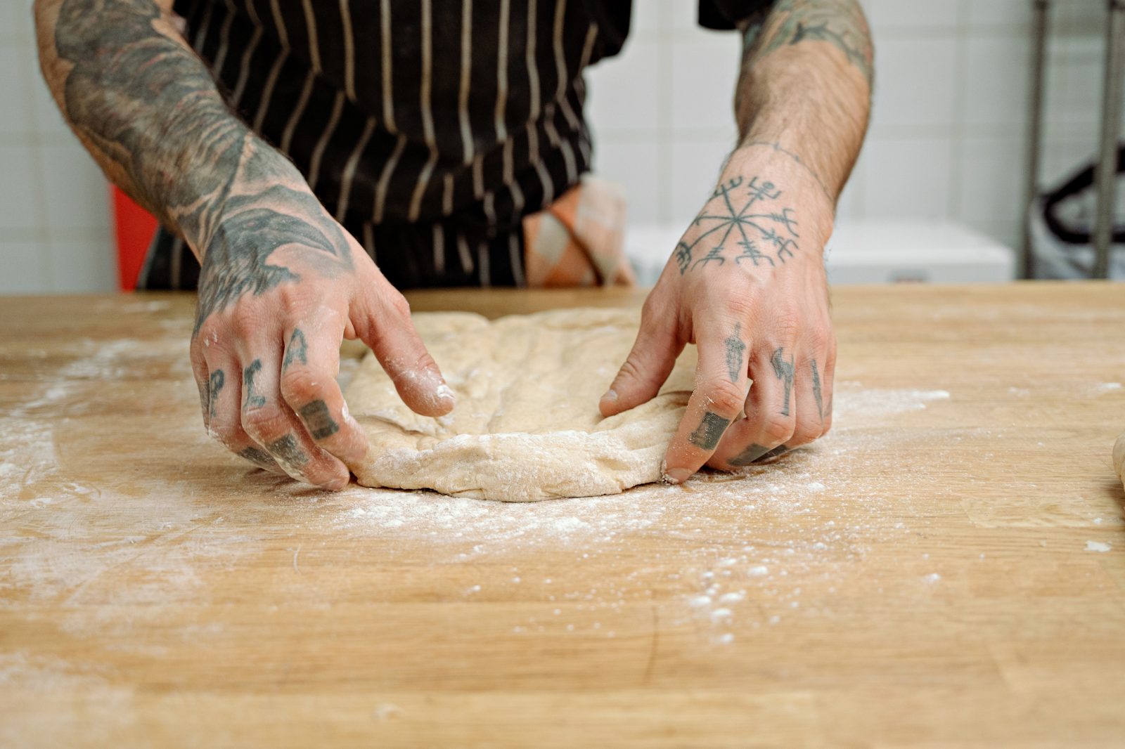 - Η παρασκευή με το πιο απλά υλικά: αλεύρι, νερό, αλάτι και συχνά ελαιόλαδο