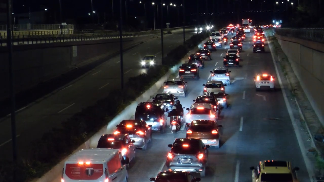 Η κίνηση δεν λείπει ούτε από την Αττική Οδό, όπου καταγράφεται μεγάλο μποτιλιάρισμα στο ρεύμα προς Ελευσίνα.