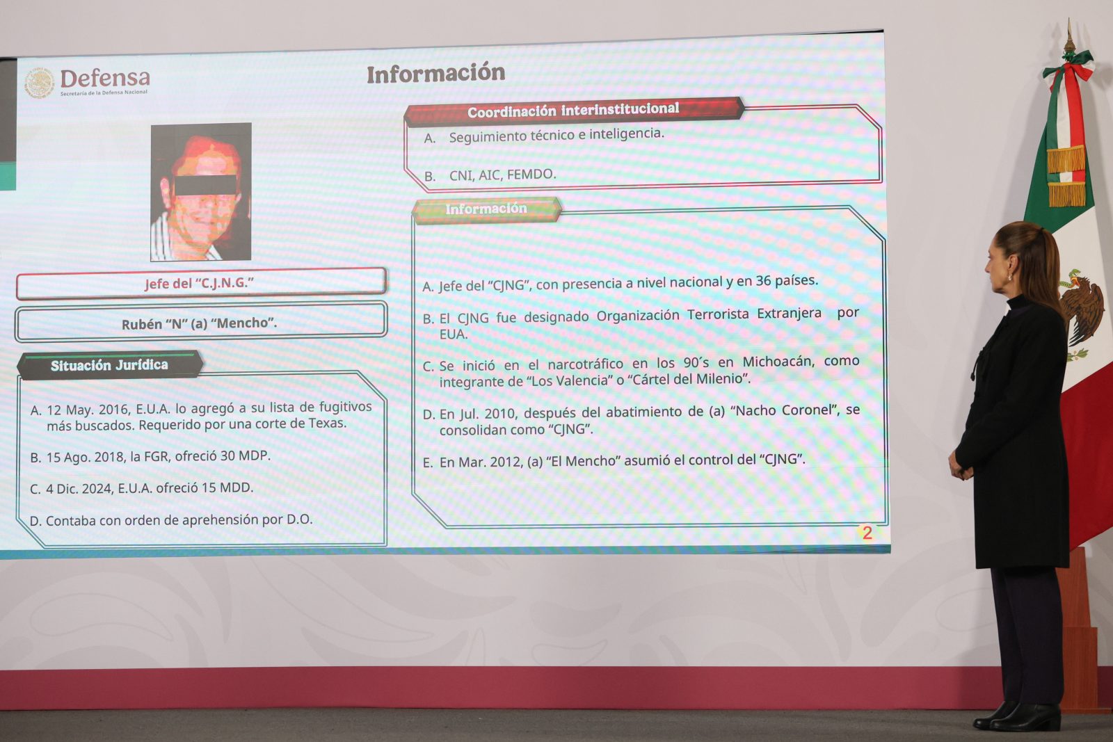 Νωρίτερα, σε συνέντευξη Τύπου, ο μεξικανός Υπουργός Άμυνας, στρατηγός Ρικάρντο Τρεβίγια Τρέχο, αποκάλυψε ότι η τοποθεσία του «Ελ Μέντσο» εντοπίστηκε την Παρασκευή χάρη σε πληροφορίες από έναν στενό συνεργάτη της συντρόφου του αρχηγού του καρτέλ, η οποία είχε εισέλθει σε εγκατάσταση στο Χαλίσκο.