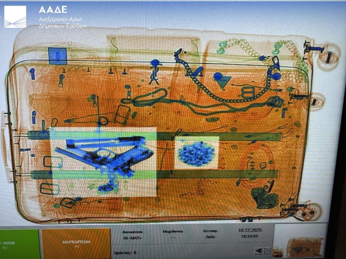 Στον Τελωνειακό Ελεγκτικό Σταθμό Μαυροματίου του Τελωνείου Ηγουμενίτσας, σε έλεγχο με χρήση Χ-ray οι ελεγκτές εντόπισαν την ύπαρξη ύποπτων ουσιών, στις αποσκευές πολίτη κατά την έξοδό του από την χώρα. Σε συνεργασία με το Τμήμα Δίωξης Ναρκωτικών, της Υποδιεύθυνσης Δίωξης και εξιχνίασης εγκλημάτων Ηγουμενίτσας, κατά τον φυσικό έλεγχο διαπιστώθηκε ότι έφερε στις αποσκευές του: