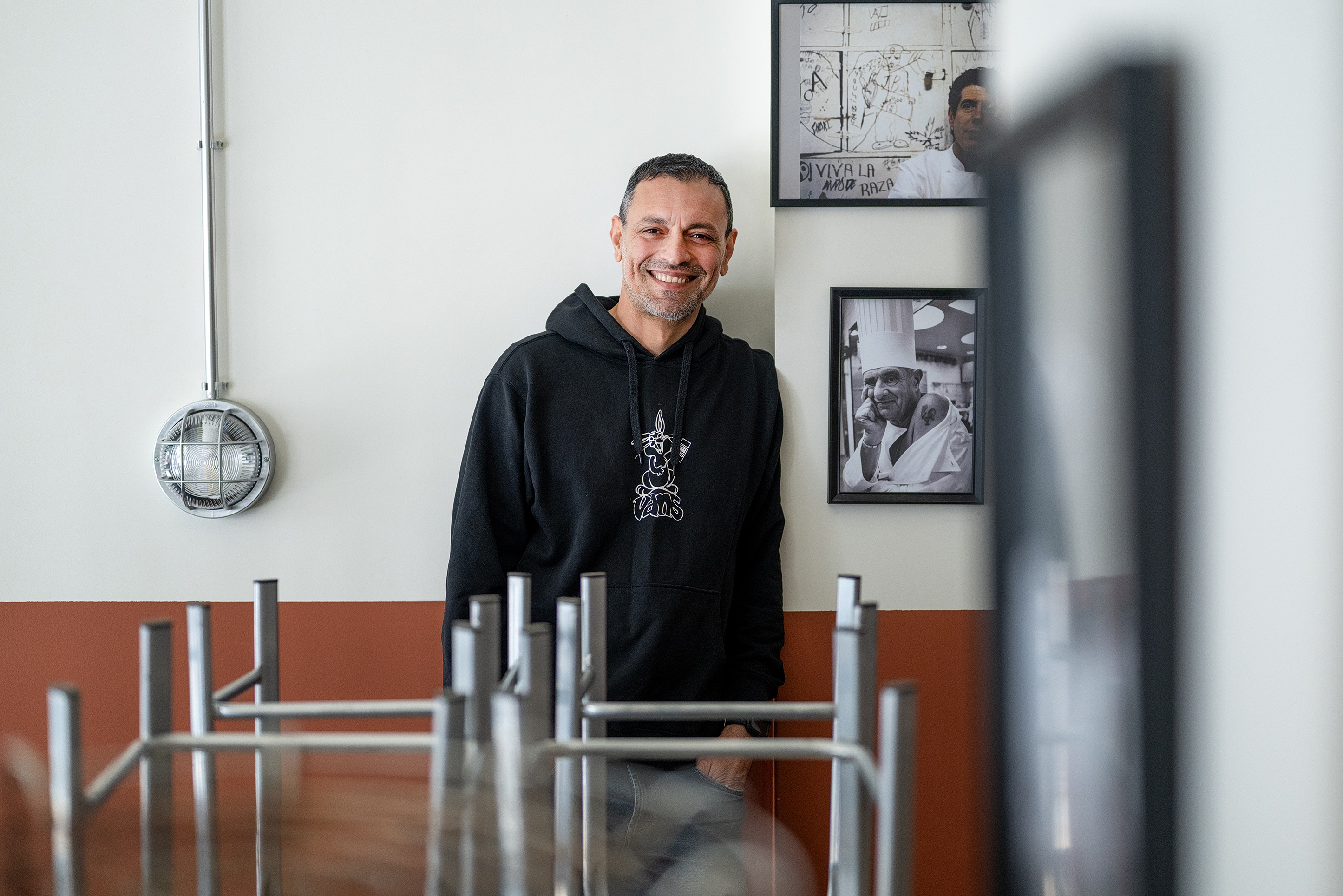 Το Ραντικαλ δεν γεννήθηκε από κάποιο business plan, αλλά από μια ανάγκη. Την ανάγκη να δημιουργηθεί ένας χώρος αληθινός, χωρίς προσποιήσεις. «Ήθελα ένα μαγαζί που θα διασκεδάζεις κανονικά και θα τρως», λέει. Όχι ένα ακόμη εστιατόριο με επινοημένη ταυτότητα, αλλά ένα περιβάλλον που αντανακλά πραγματικές συνήθειες, πραγματικά ακούσματα, πραγματικές φιλίες.