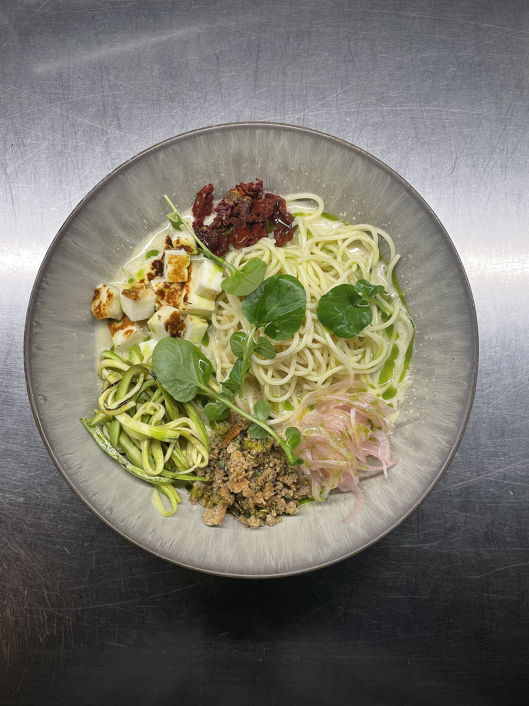 Ένα comfort πιάτο με φιδέ, πράσινο κάρι, κρέμα καρύδας και χαλούμι. Φωτό: Νίκος Μαλιάκος